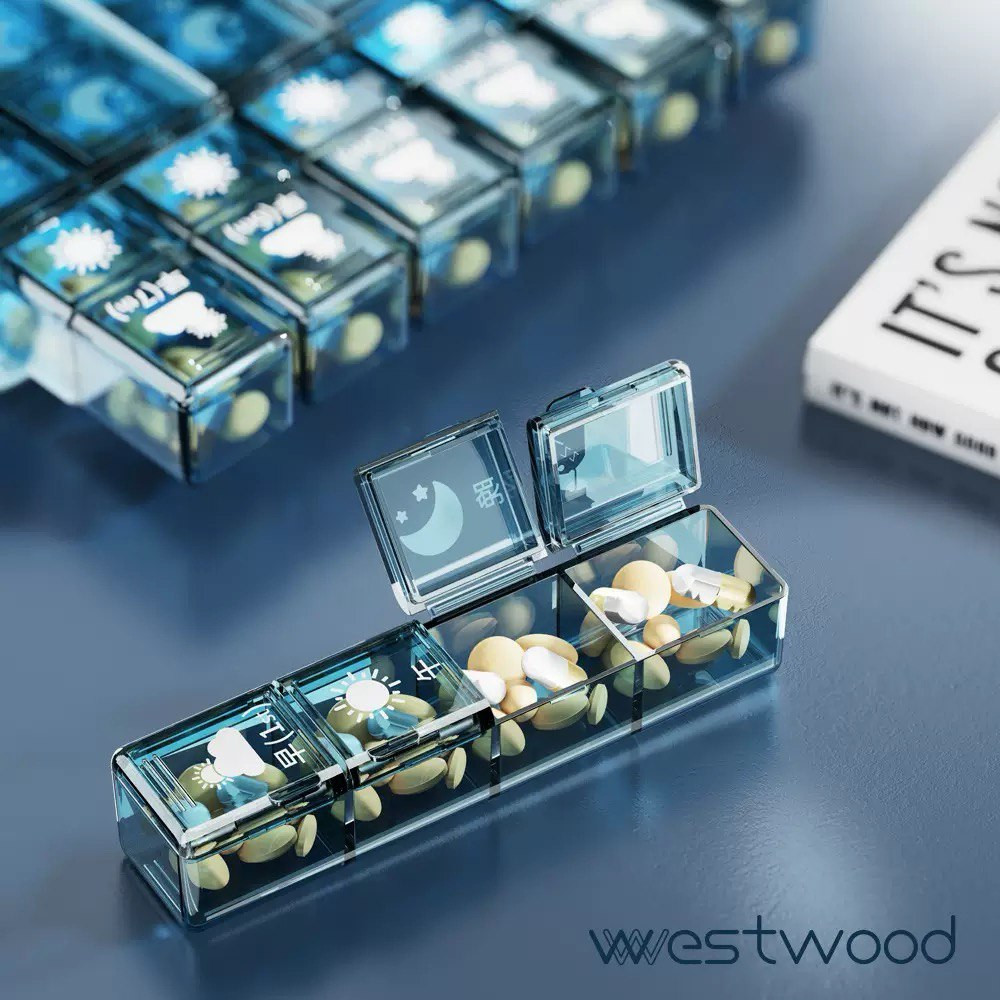 Легкая и компактная таблетница удобно помещается в сумке или кармане, что делает ее идеальной для использования дома и в поездках. Таблетницу легко чистить, что позволяет поддерживать высокий уровень гигиены и безопасности. Таблетница идеально подойдет для пожилых людей, людей с хроническими заболеваниями, а также для всех, кто принимает витамины или другие добавки. Это также отличное решение для заботливых родственников, которые хотят помочь своим близким в организации приема медикаментов.