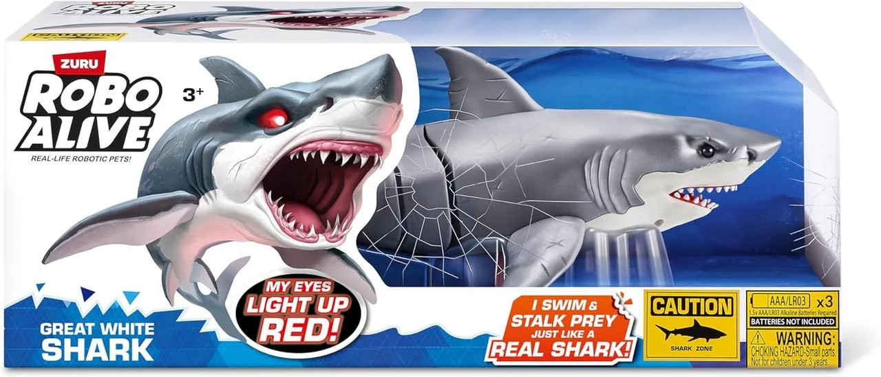 Zuru Игрушка интерактивная «Great White Shark»В данный момент этот товар отсутствует в продаже. Возможно, у нас найдется аналогичный или похожий товар здесь. Серия: Robo Alive Robo Alive Great White Shark — это реалистичная игрушка-акула от ZURU, которая поражает своими эффектами: она двигается как настоящая акула, светит глазами, активируется при контакте с водой и идеально подходит для розыгрышей. Благодаря шарнирному движению и технологии водной активации, она оживает прямо на глазах, пугая и удивляя друзей и близких. Светящиеся красным глаза добавляют драматичности, когда большая белая акула словно выслеживает свою жертву. Это зрелище точно не оставит никого равнодушным! |