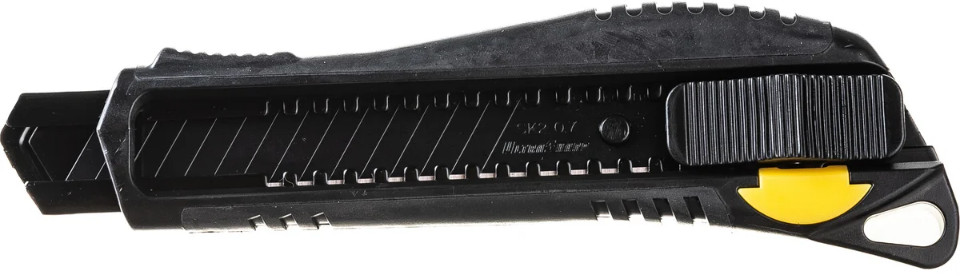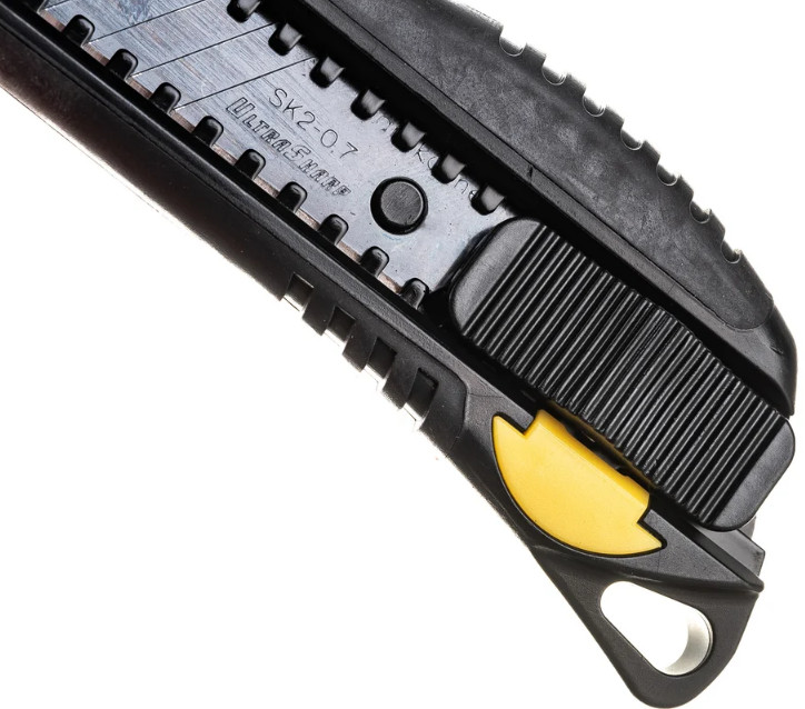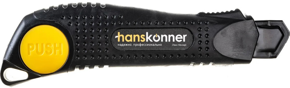 Нож Hanskonner 18 мм, обрезиненный корпус, быстрая разблокировка, лезвие SK2 0.7мм HK1076-08-02 подходит для работ с высокими нагрузками, требующих повышенной точности и интенсивности. Благодаря корпусу из высококачественного пластика и прочной металлической направляющей достигается улучшенная устойчивость конструкции при давлении на инструмент. Обрезиненная поверхность с упором под большой палец обеспечивает полный контроль ножа.