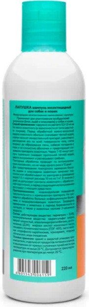 Veda Шампунь от блох, власоедов, вшей для кошек и собак «Лапушка»В данный момент этот товар отсутствует в продаже. Возможно, у нас найдется аналогичный или похожий товар здесь. Инсектицидный шампунь Лапушка — лечебное моющее средство. |