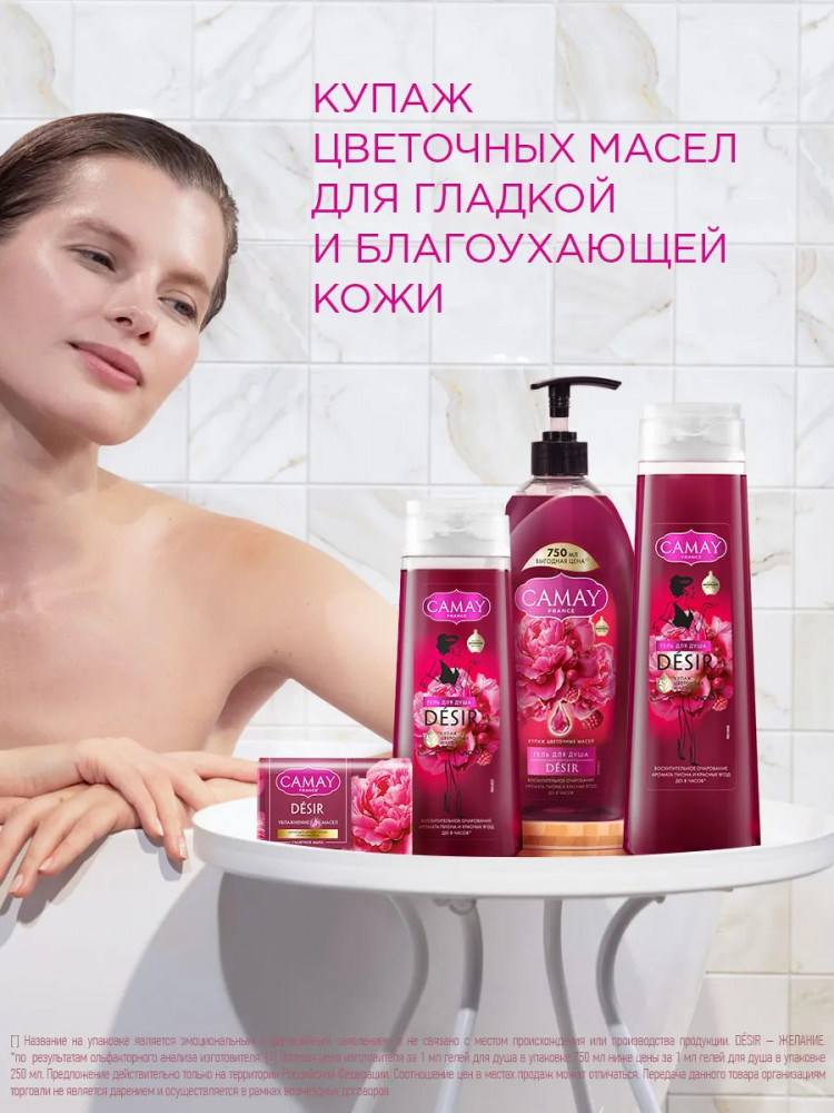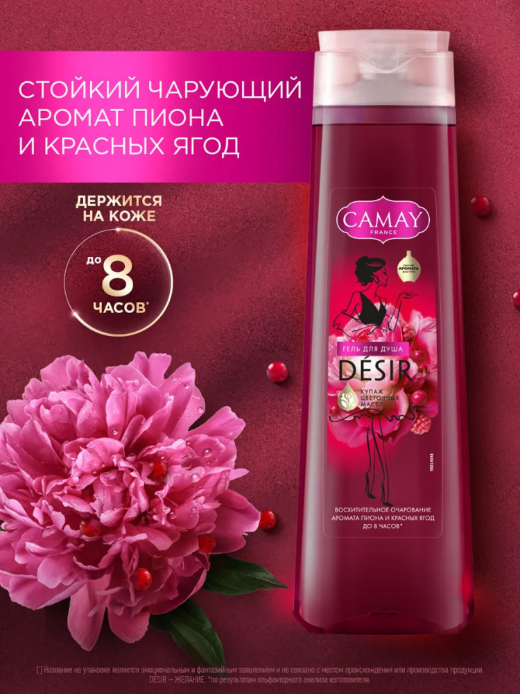 Camay Гель для душа парфюмированный «Desir. Восхитительное очарование. Пион и красные ягоды»