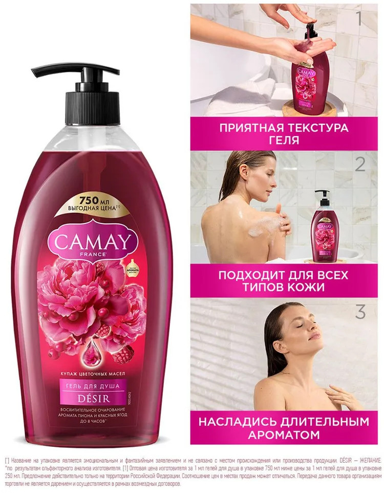 Camay Гель для душа парфюмированный «Desir. Восхитительное очарование. Пион и красные ягоды»