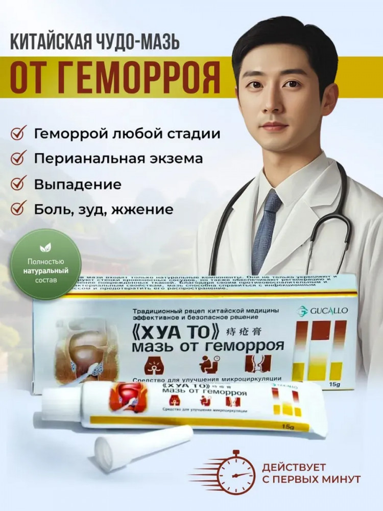 Мазь от геморроя «Хуа то» — эффективное средство против распространенной патологии. Изготовлена китайскими фармацевтами на основе многолетнего опыта предыдущих поколений травников. О мази ходят настоящие легенды. «Хуа то» поможет в короткие сроки облегчить симптомы заболевания, улучшить общее самочувствие, снять болезненность, отечность, зуд и прочий дискомфорт в анальном отверстии. Мазь устраняет кровоточивость, уменьшает выраженность геморроидальных шишек. Средство обладает выраженными противовоспалительными, обезболивающими, заживляющими, противо-зудными и противоотечными, антибактериальными свойствами.