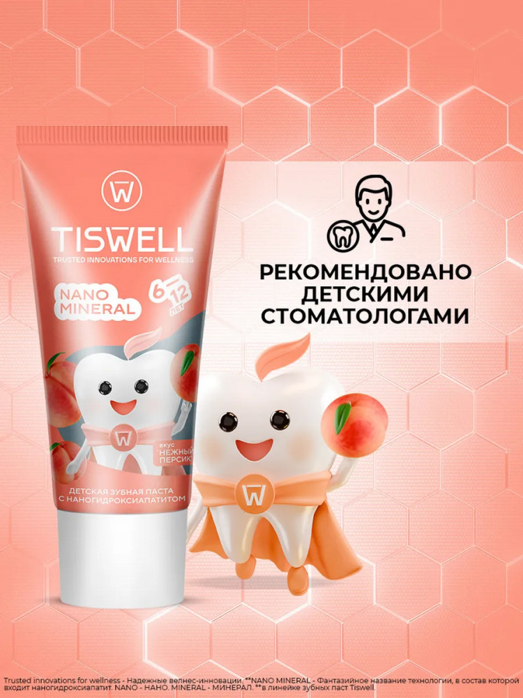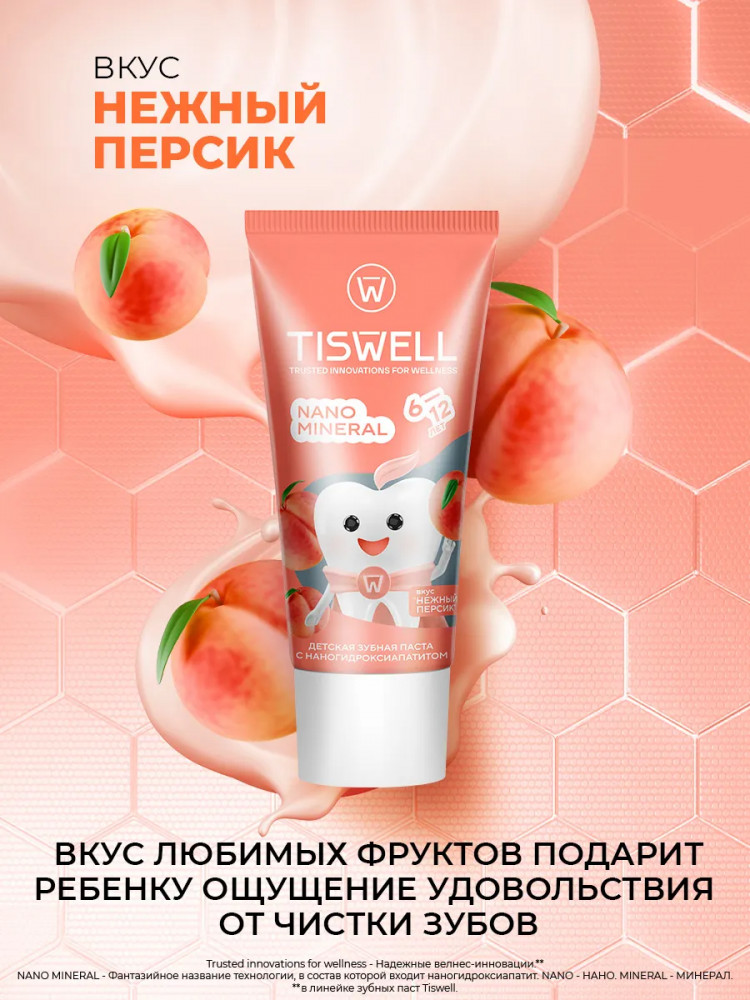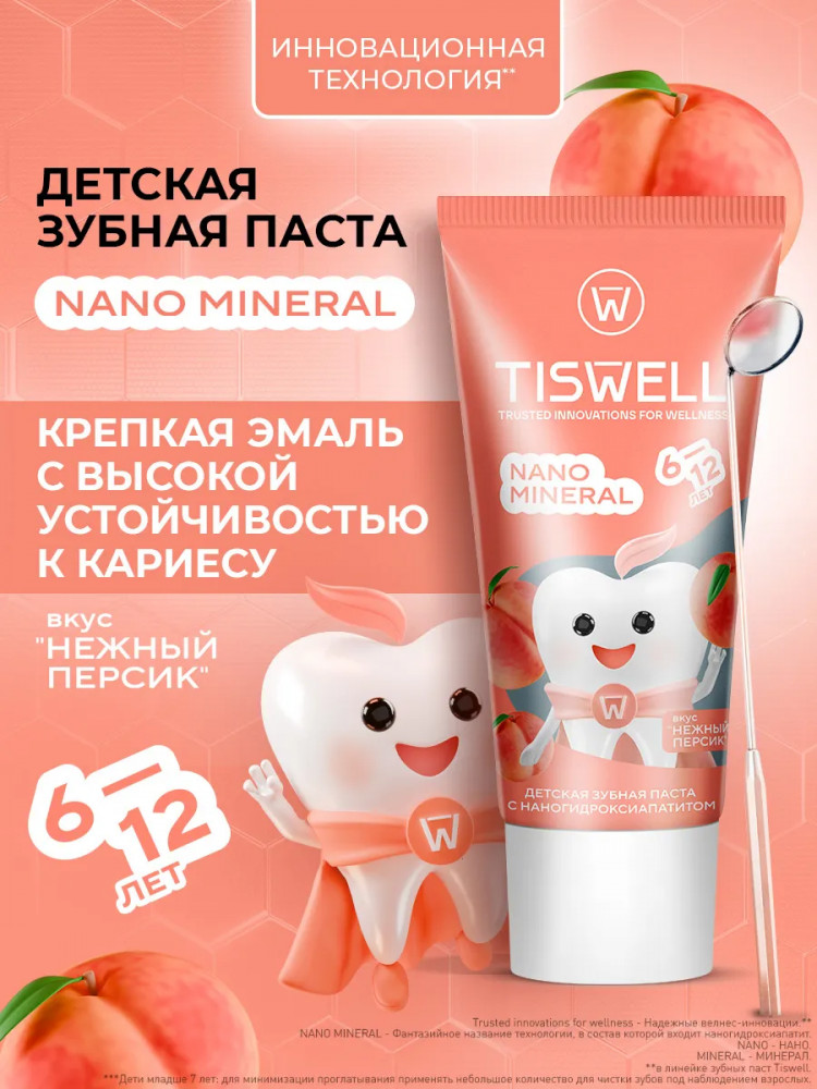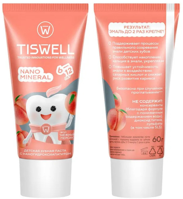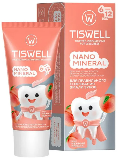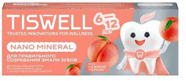 Tiswell Зубная паста детская реминерализующая с наногидроксиапатитом и фтором «Нежный персик»