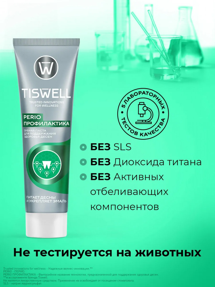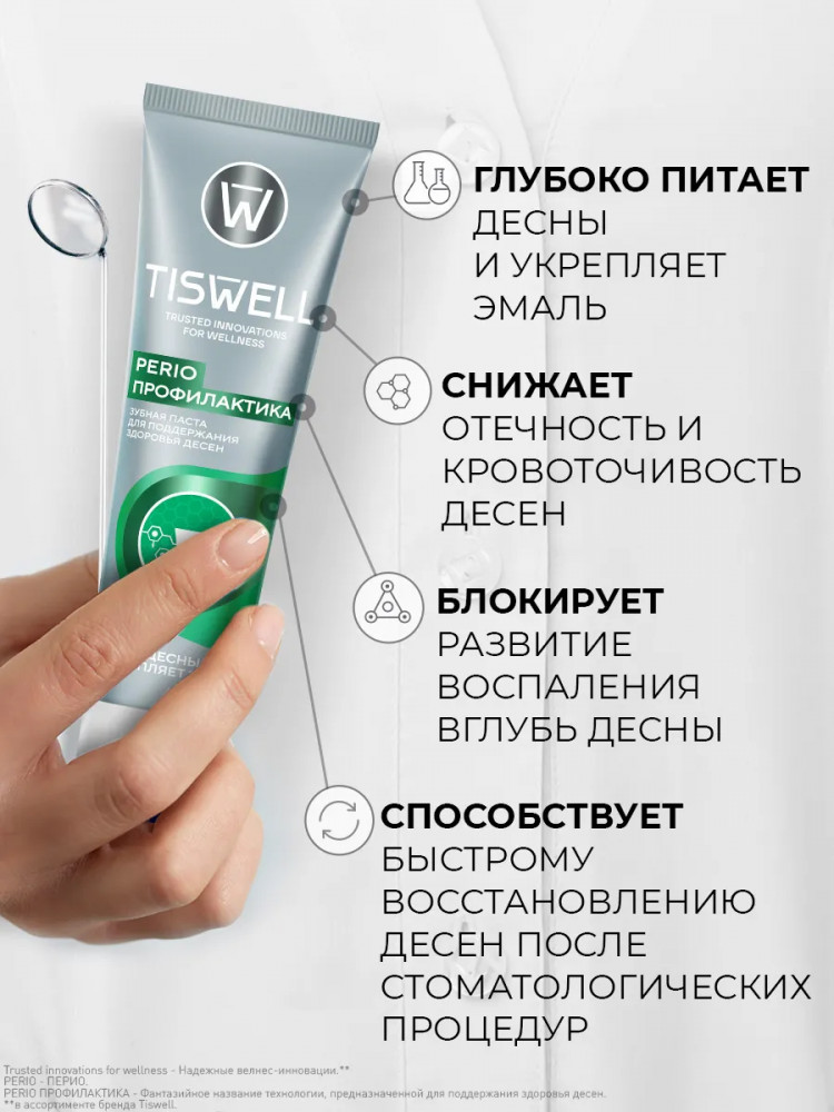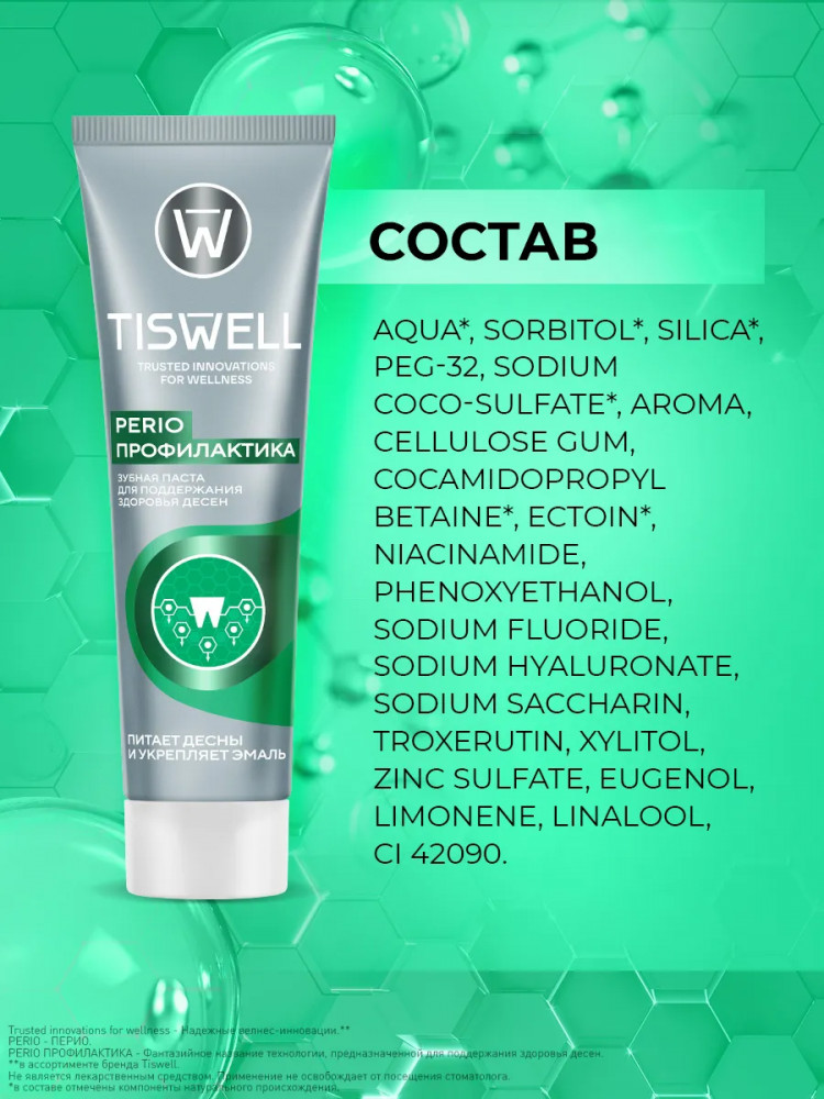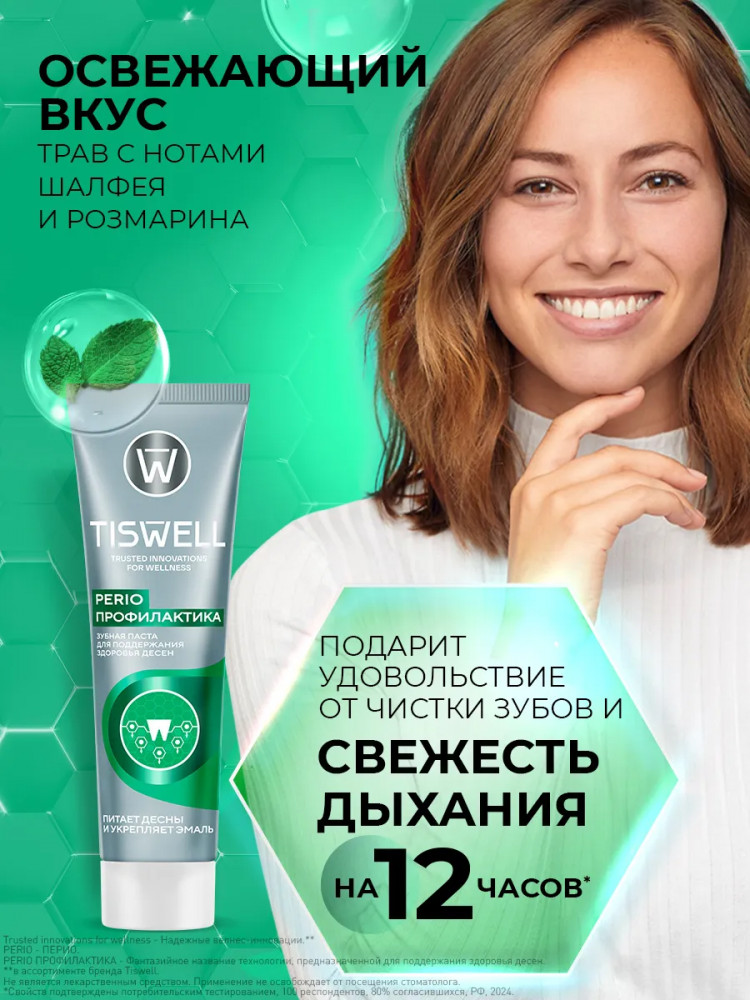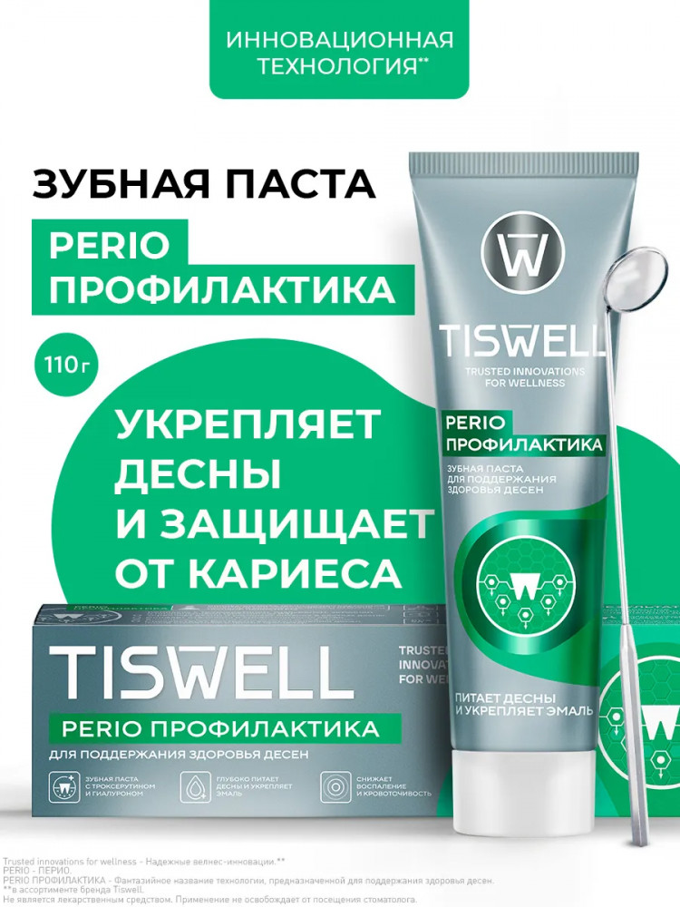 Tiswell Зубная паста для укрепления и поддержания здоровья чувствительных десен с троксерутином и гиалуроном