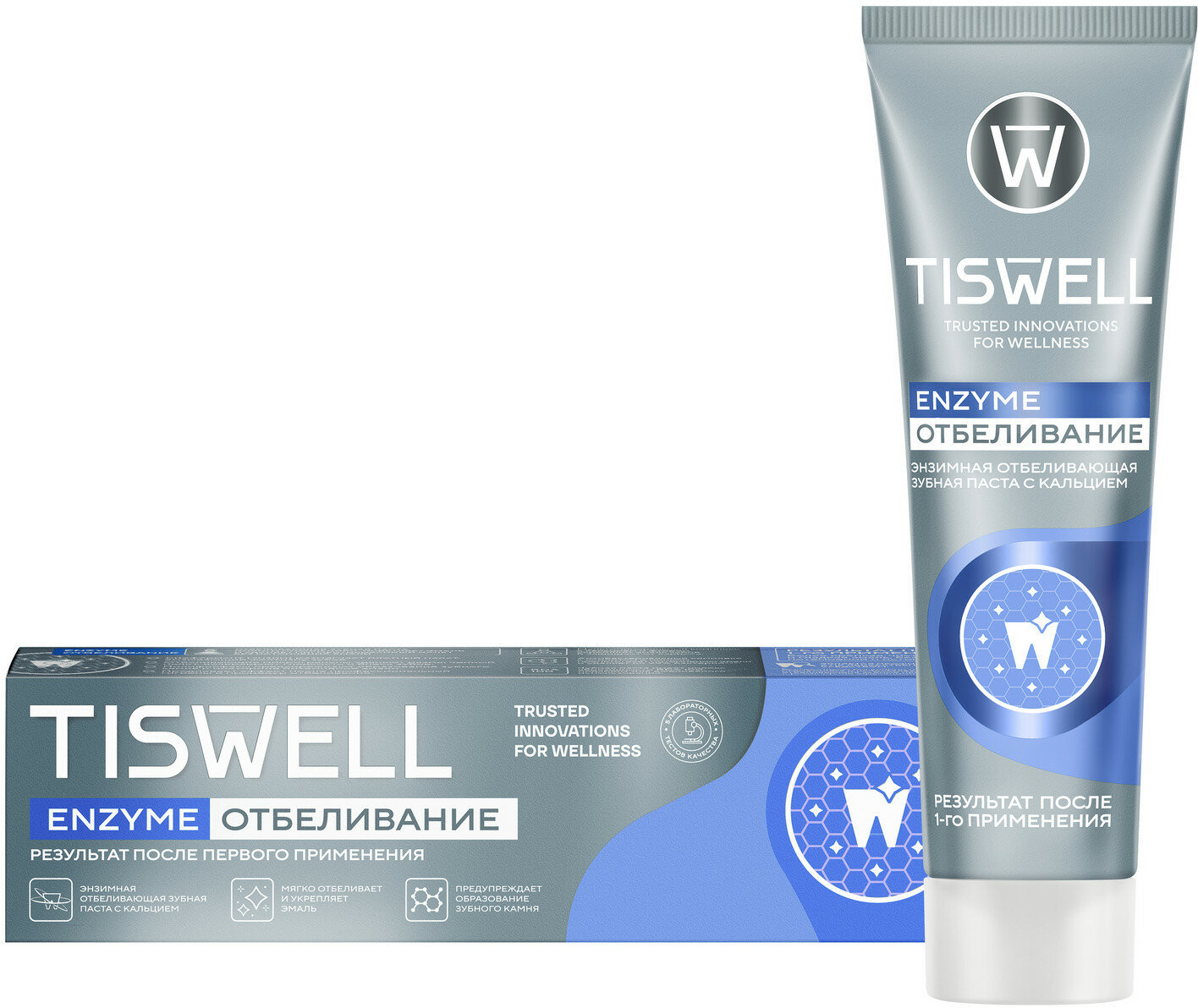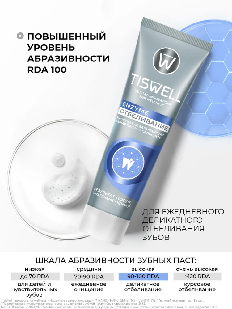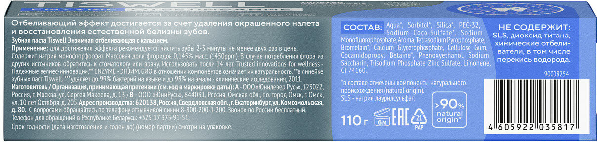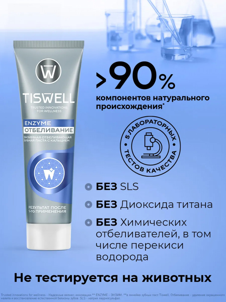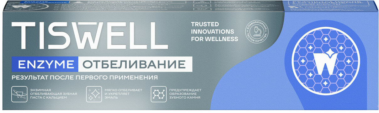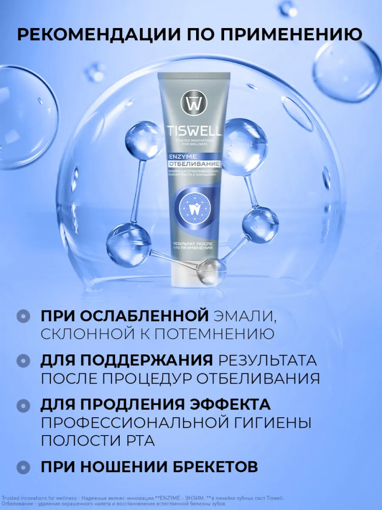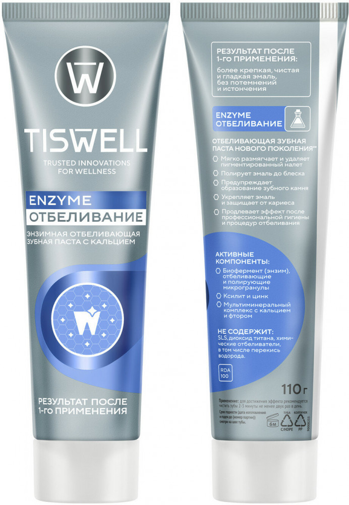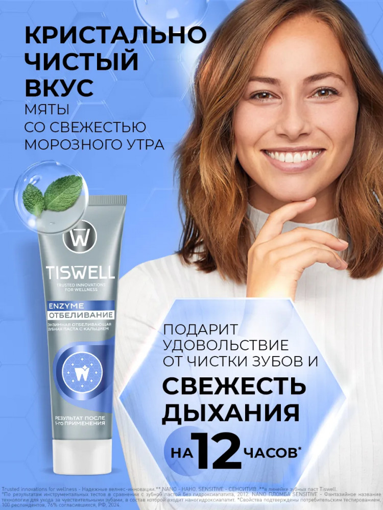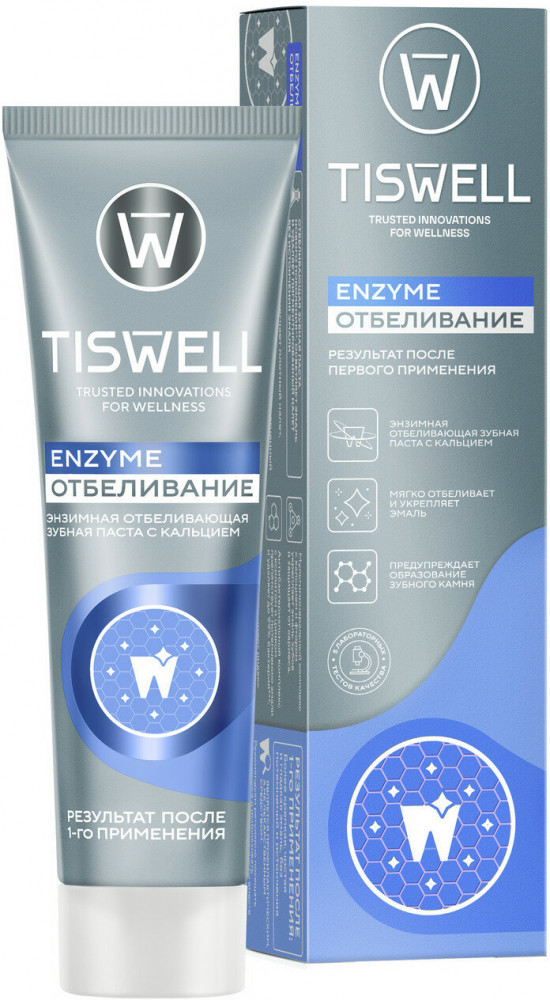 Tiswell Зубная паста отбеливающая энзимная от темного налета и камня с кальцием и фтором