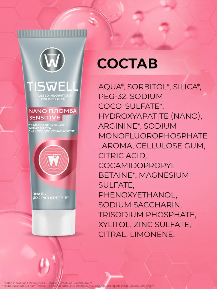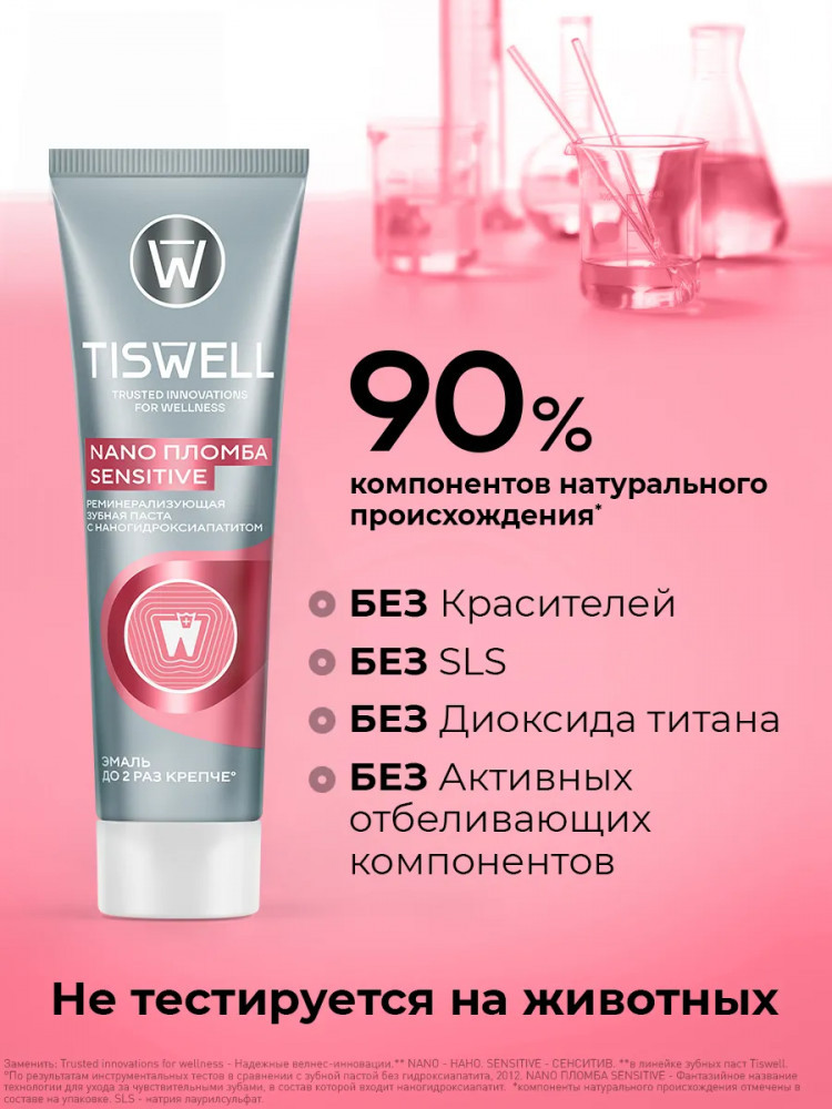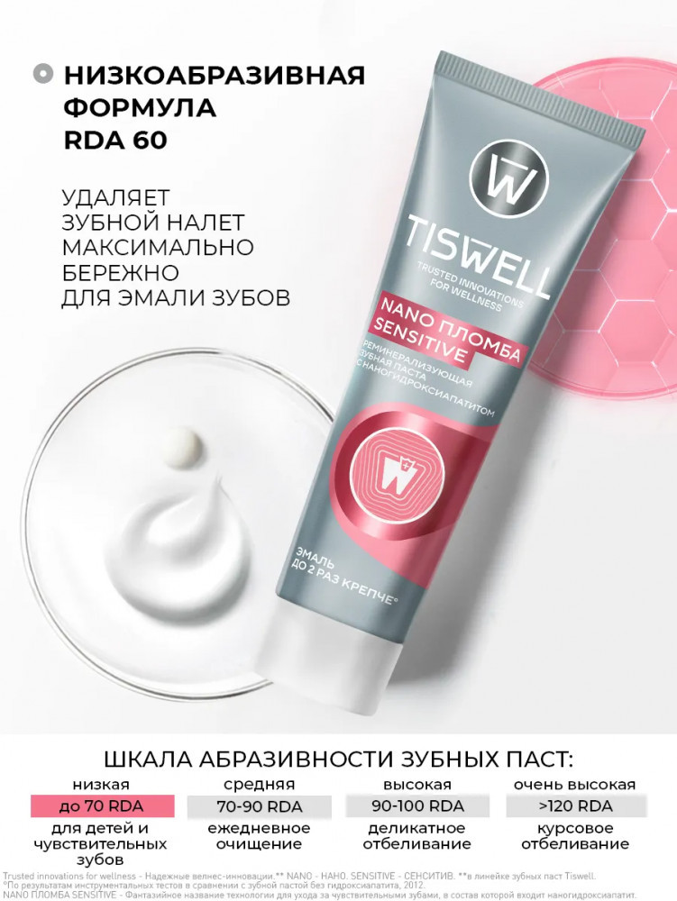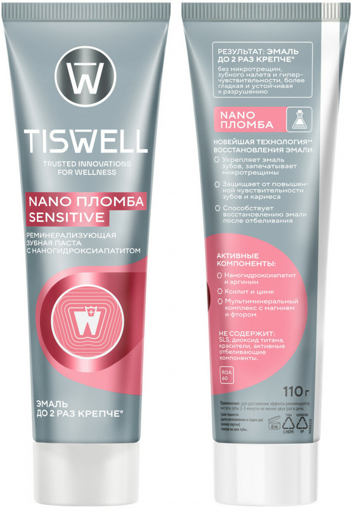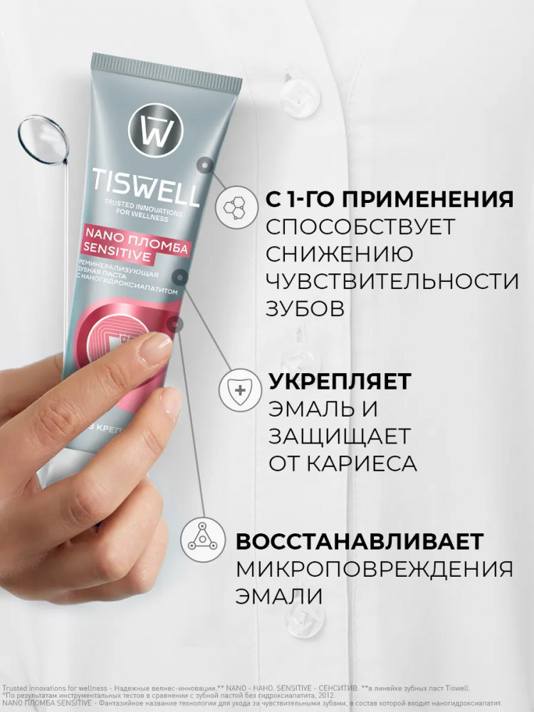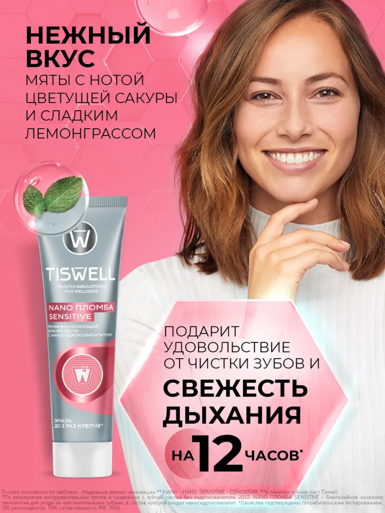 Tiswell Зубная паста реминерализующая от кариеса для чувствительных зубов с наногидроксиапатитом «Sensitive»