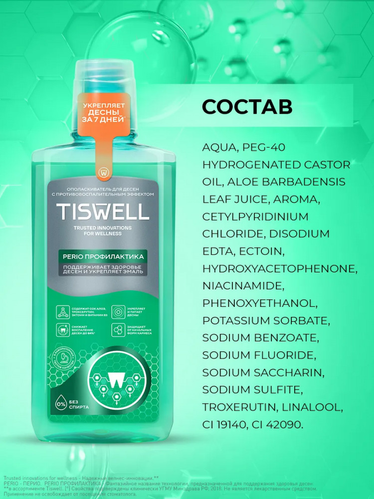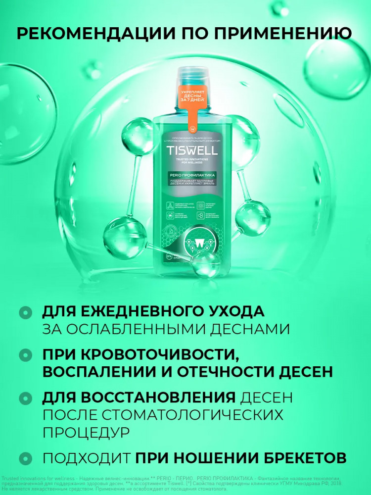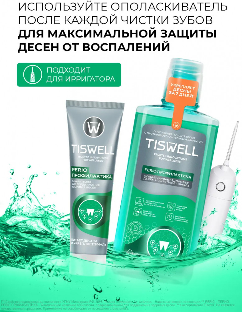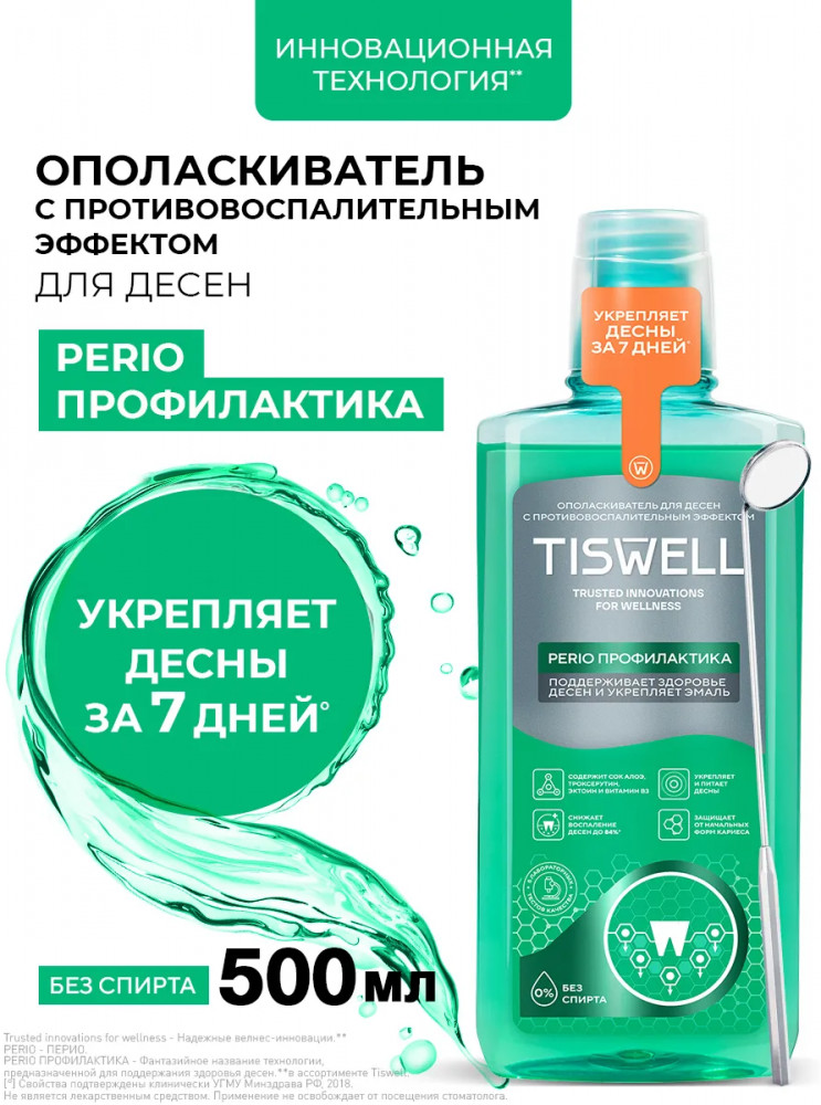 Tiswell Ополаскиватель для полости рта с троксерутином «Здоровье десен и укрепление эмали»