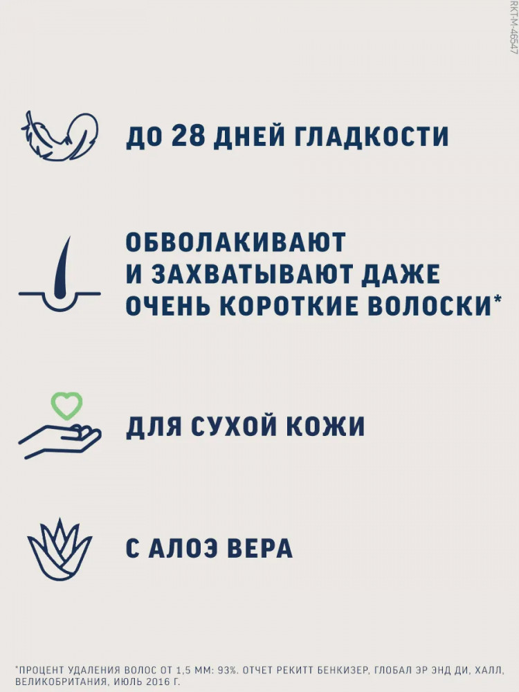 ** Процент удаления волос от 1,5 мм: 93%. Отчёт Рекитт Бенкизер, Глобал Эр энд Ди, Халл, Великобритания, июль 2016 г.