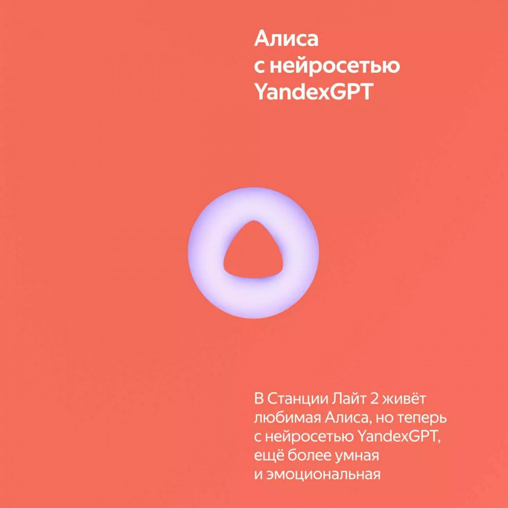 Яндекс станция Лайт 2 — новая умная колонка для детей и тех, кто не перестаёт ими быть. Внутри живёт более эмоциональная и функциональная Алиса, с которой никогда не бывает скучно: с ней можно веселиться, делиться секретами, играть и общаться дни напролёт — она найдет ответы на миллионы вопросов, придумает идеи, предложит классные игры, включит любимую музыку. Теперь виртуальный ассистент № 1 подстраивает интонацию под ваше настроение и показывает свои эмоции с помощью глазок на LED-экране станции. В наборе — классные стикеры и маски, чтобы у ребёнка было пространство для творчества.