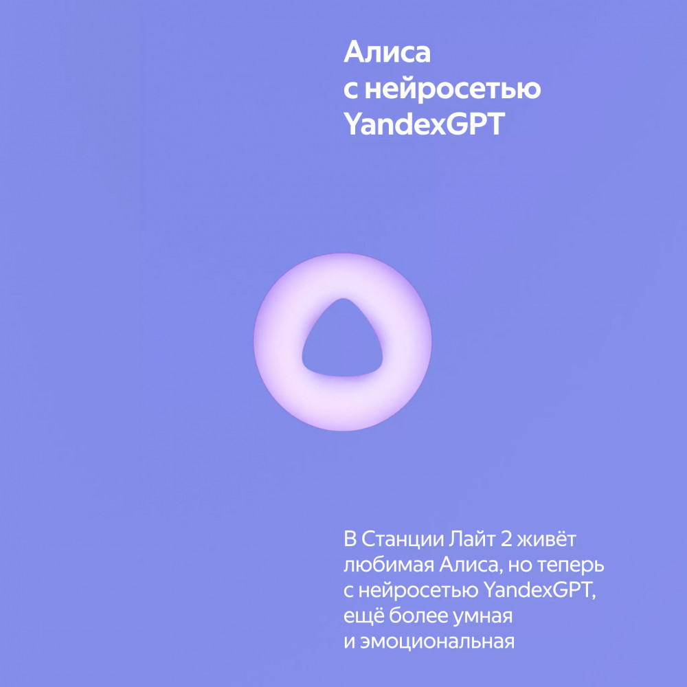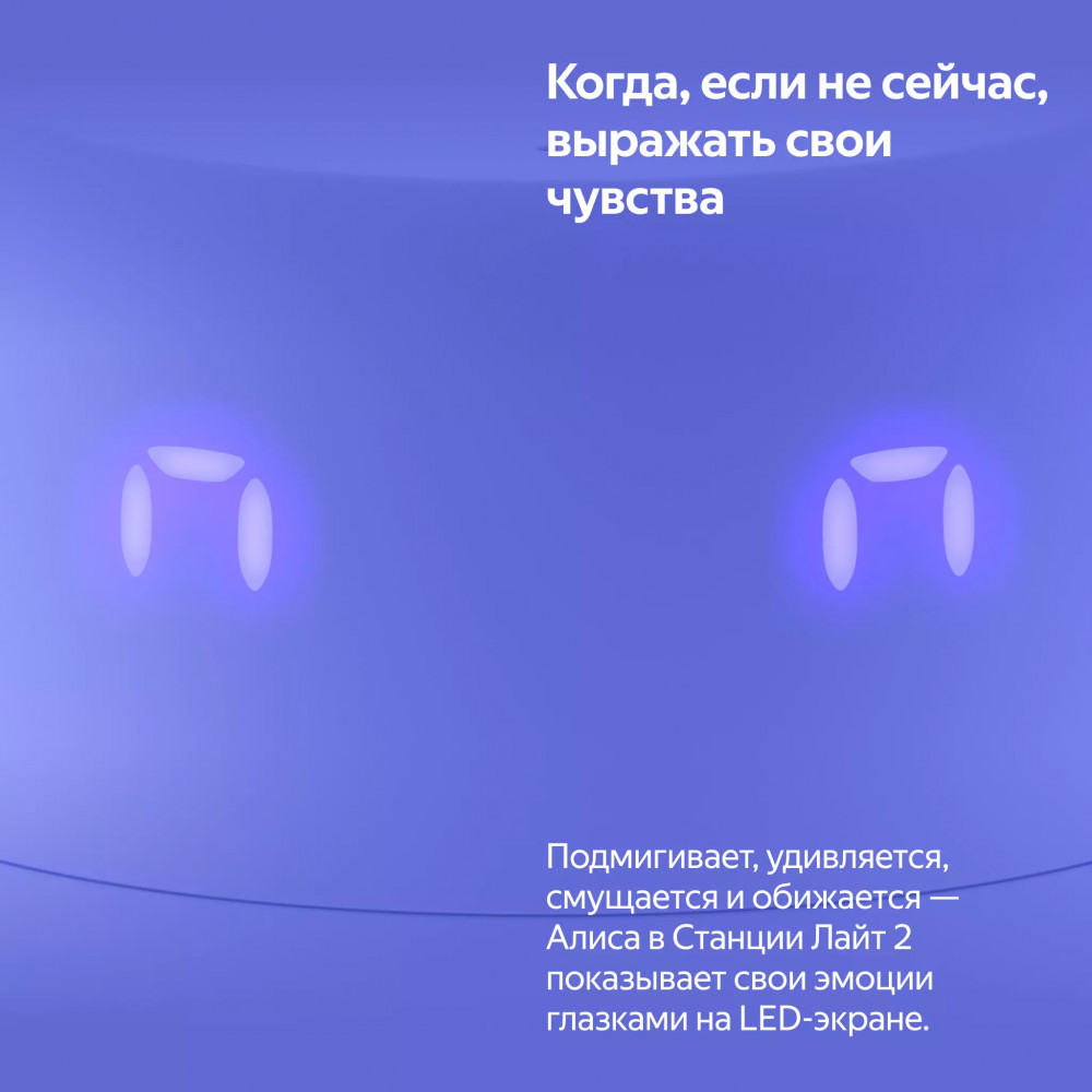Яндекс станция Лайт 2 — новая умная колонка для детей и тех, кто не перестаёт ими быть. Внутри живёт более эмоциональная и функциональная Алиса, с которой никогда не бывает скучно: с ней можно веселиться, делиться секретами, играть и общаться дни напролёт — она найдет ответы на миллионы вопросов, придумает идеи, предложит классные игры, включит любимую музыку. Теперь виртуальный ассистент № 1 подстраивает интонацию под ваше настроение и показывает свои эмоции с помощью глазок на LED-экране станции. В наборе — классные стикеры и маски, чтобы у ребёнка было пространство для творчества.