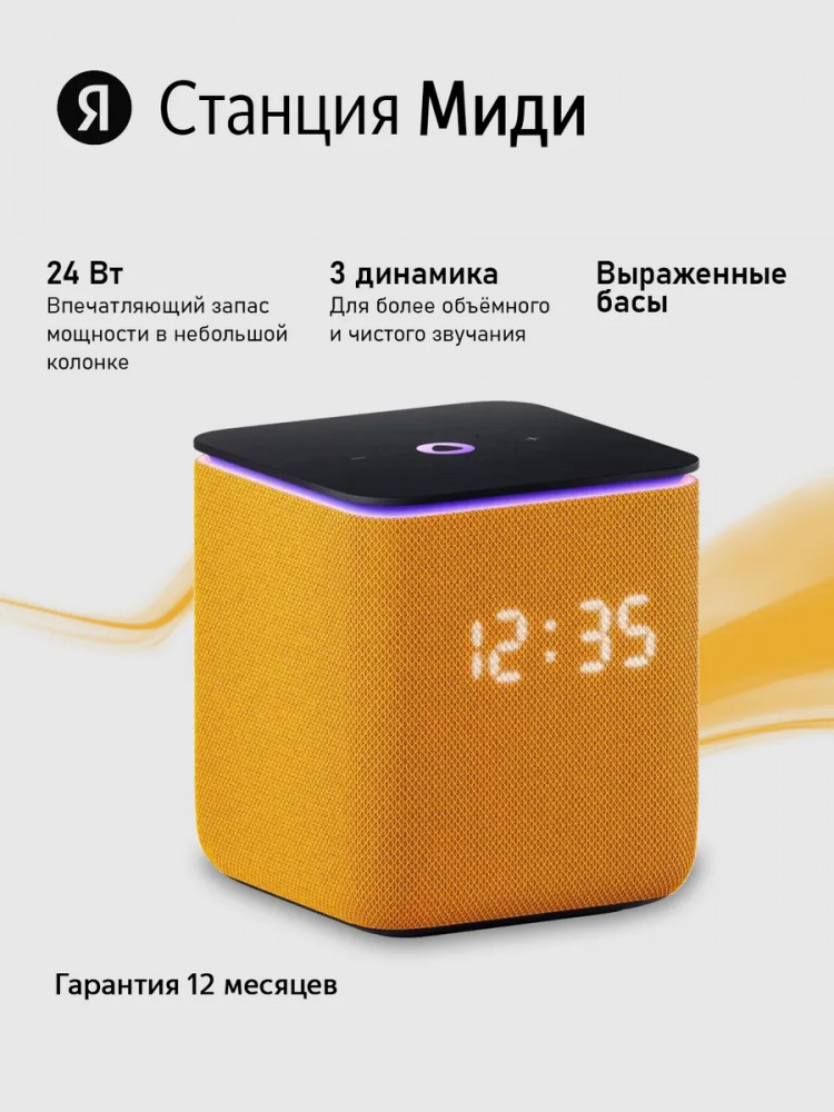 Яндекс станция Миди — новая умная колонка с виртуальным ассистентом Алисой. Мощное звучание 24 Вт в таком компактном корпусе. Нейронный процессор, благодаря которому Алиса ещё точнее отзывается на ваши команды и обрабатывает ваши запросы. LED-дисплей, который показывает время, погоду и реакции Алисы, а также активная контрурная LED-подсветка. Встроенный хаб управления Zigbee™1 и голосовое управление умным домом даже без интернета2. Беспроводная связь Wi-Fi (2,4–5 ГГц) и Bluetooth 5.0, с возможностью встраивания в экосистему умного дома. Новый размер и узнаваемый дизайн — станция Миди впишется