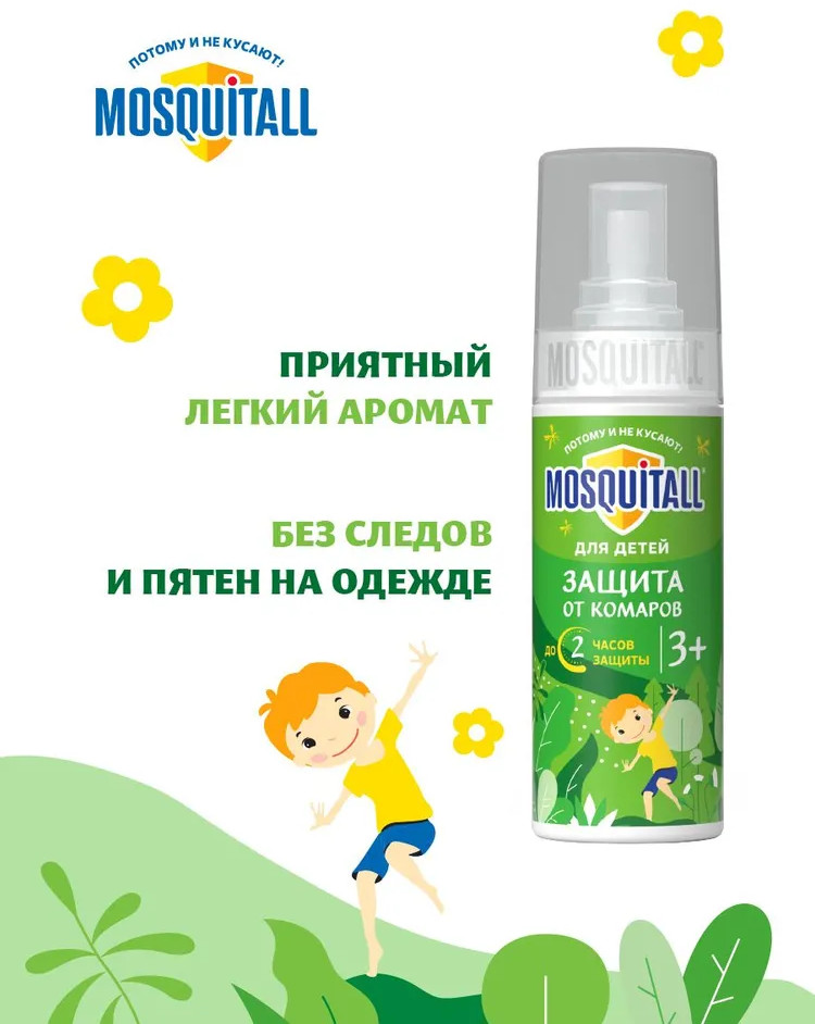 💳 Оплатить за товар можно при получении 🇰🇿 Есть бесплатная доставка по Казахстану 🎁 Копите бонусы с каждой покупки Детский спрей Mosquitall Нежная защита — это ваш надежный барьер против комаров, москитов и других крылатых вредителей на природе и дома. Он разработан для детей от 3 лет обеспечивая до 2 часов экстразащиты, во время отдыха на природе, на рыбалке, прогулок в лесу или на дачном участке. Эффективная формула на основе ДЭТА (7,5%), экстракта череды и аллантоина, делает его эффективным против широкого спектра кровососущих насекомых включая комаров, мошек, москитов, мокрецов и слепней, минимизируя риск укусов и возможных инфекций. Череда и аллантоин нежно ухаживают, снимают раздражение, оставляя приятное ощущение на коже. Это профессиональное средство подходит для использования как в открытых пространствах, так и в квартире и доме, где необходимо обезопаситься от надоедливых насекомых. |