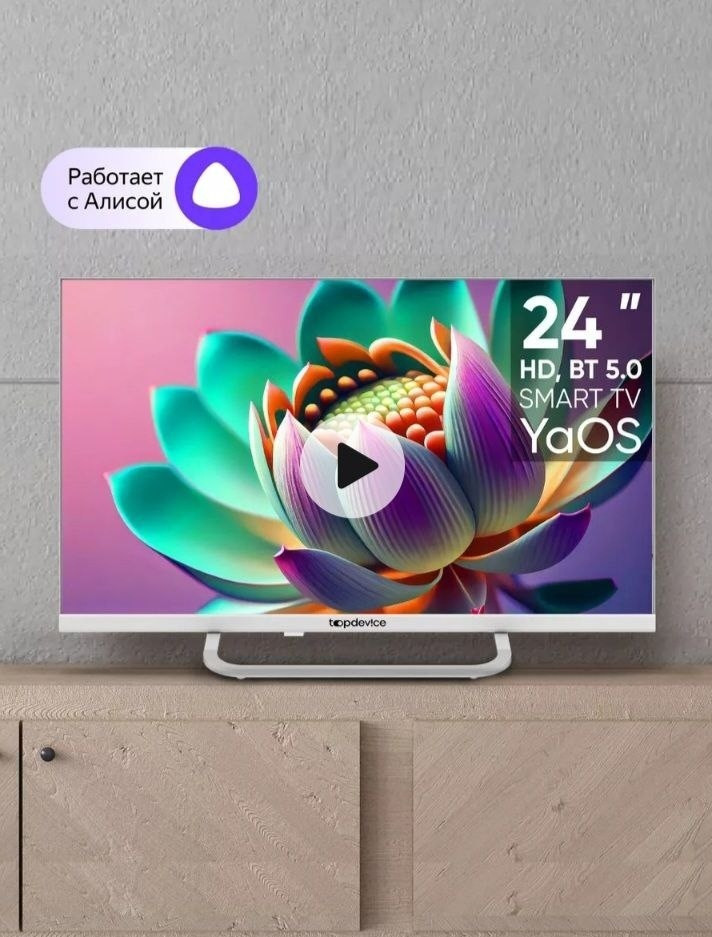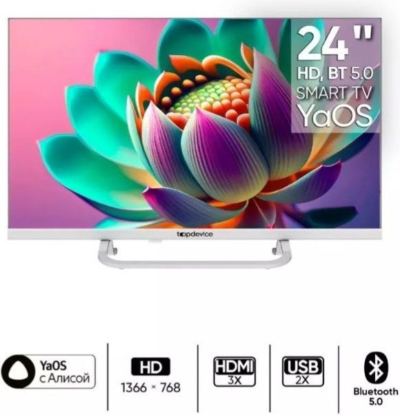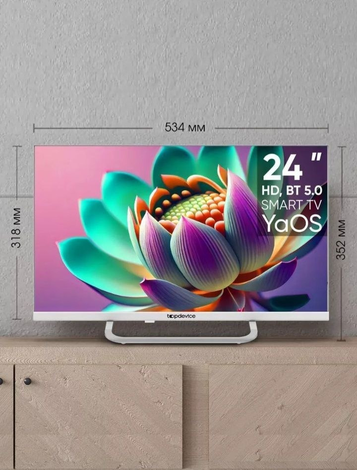 24-дюймовый телевизор со SMART TV YaOS имеет безрамочный корпус. Диагональ экрана обеспечивает качественное изображение с разрешением HD. Dolby audio обеспечивает отличное звучание.