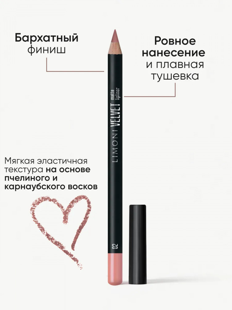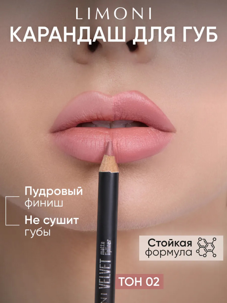 Limoni Карандаш для губ «Velvet Matte Lipliner», тон 02