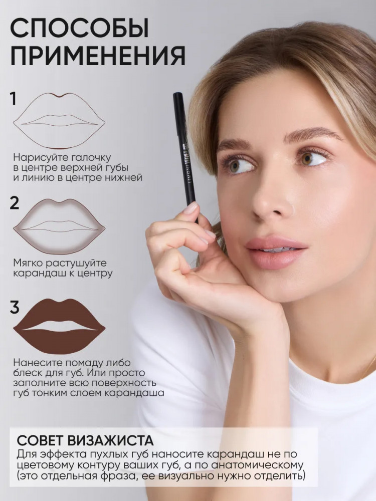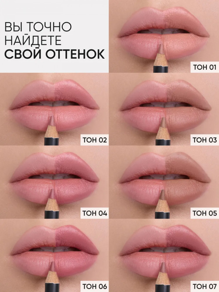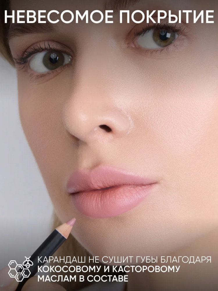 наконец то я нашла для себя идеальный карандаш, на губах держится долго(если дополнительно не красить помаду/блеск) на губах совсем не чувствуется,не липкий,не стягивает, цвет тот что я искала,под тон губ 07