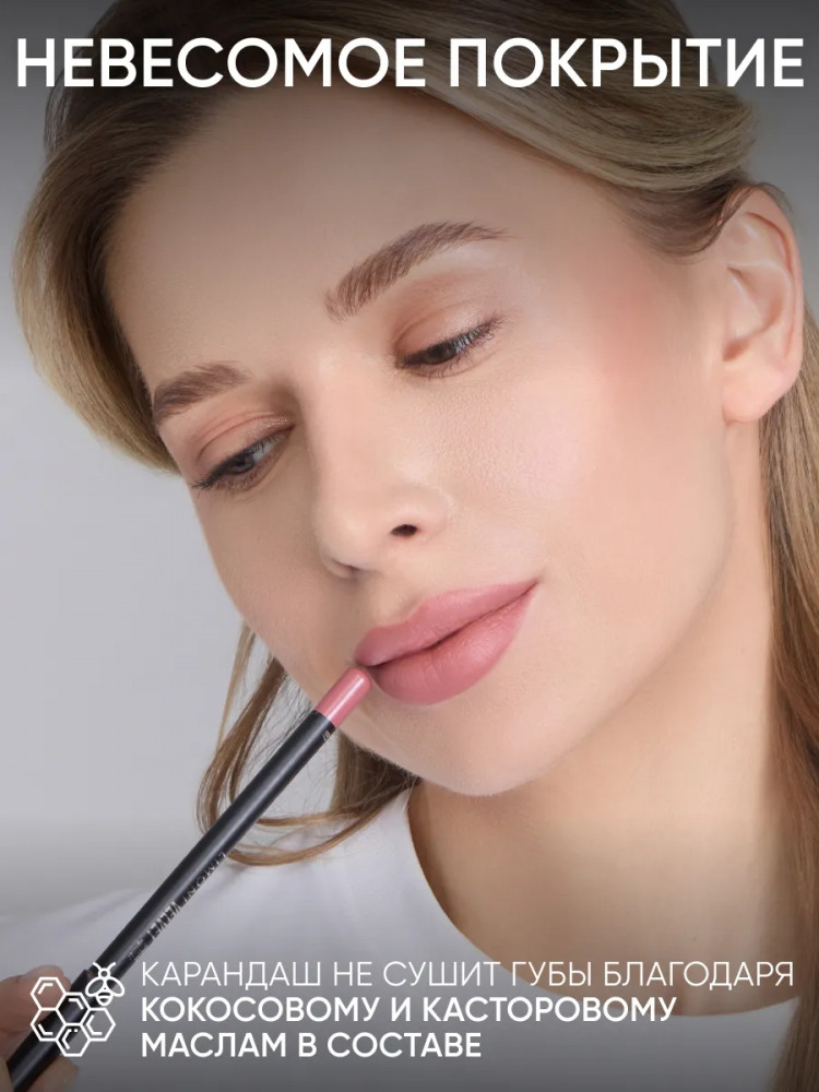 наконец то я нашла для себя идеальный карандаш, на губах держится долго(если дополнительно не красить помаду/блеск) на губах совсем не чувствуется,не липкий,не стягивает, цвет тот что я искала,под тон губ 07