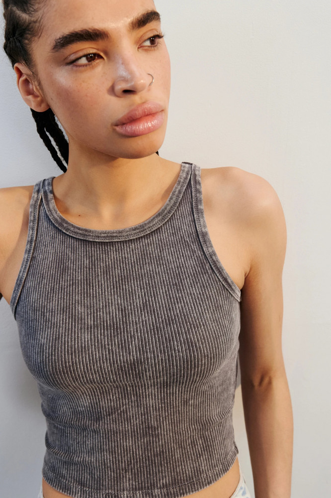 - Укороченный женский топ-майка облегающего кроя из мягкой, эластичной и очень приятной к телу хлопковой ткани в мелкий рубчик - Узкие нерегулируемые бретели. Высокий круглый вырез горловины, закрытая спинка. Прямой нижний край - Базовые и яркие расцветки с вареным эффектом. Основа основ и мастхэв любого гардероба: короткая базовая майка на узких бретельках на любой случай жизни. Универсальная и суперудобная майка под пиджак в офис, для занятий спортом, йогой, повседневных луков и просто отдыха дома. Сочетай ее с любым низом на свой вкус и создавай расслабленные и стильные кэжуал-луки, в которых тебе будет максимально удобно. Носи топ отдельно или используй в качестве основы для трендовых многослойных луков.