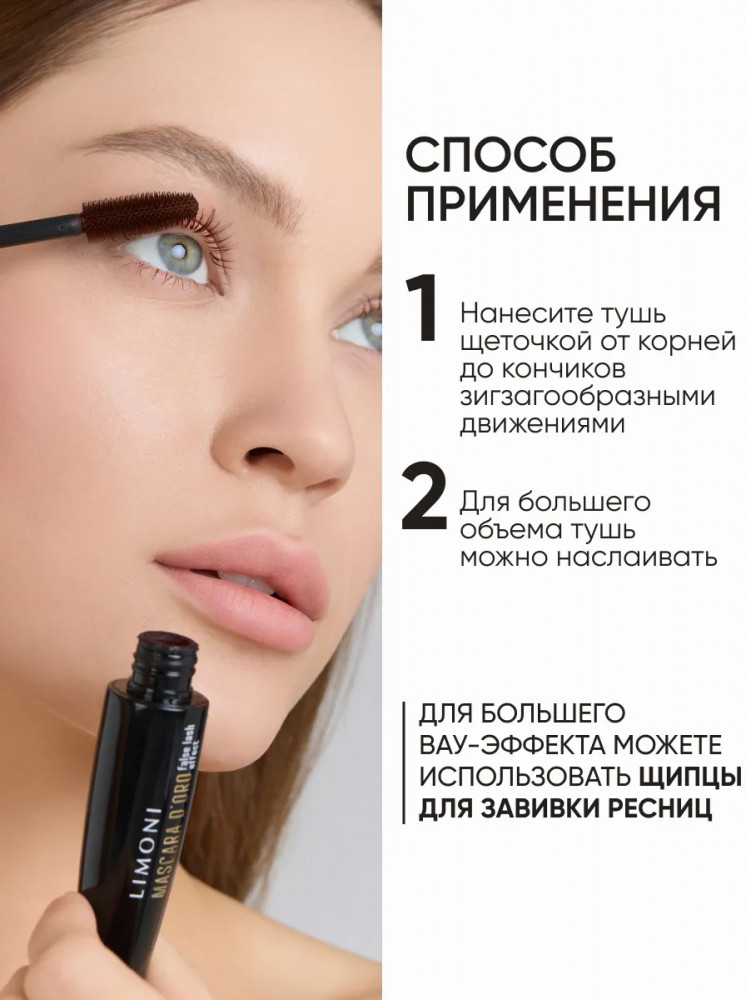Limoni Тушь с эффектом накладных ресниц «Mascara D'oro», оттенок 02 Brown