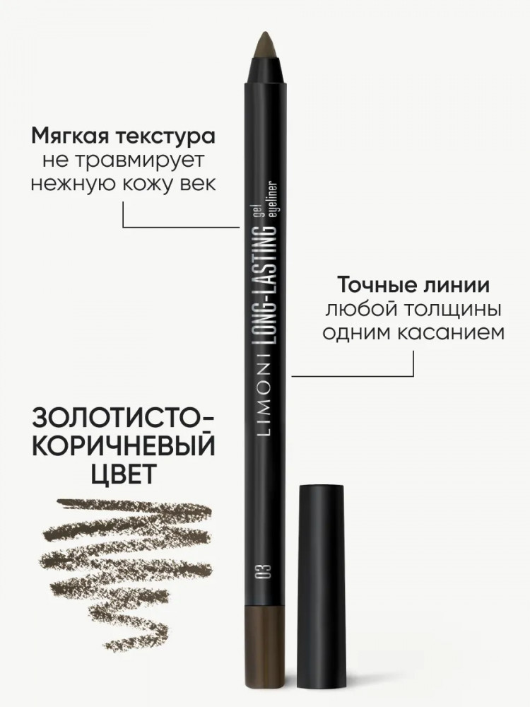 Limoni Карандаш для глаз водостойкий «Long-lasting Gel Eyeliner», оттенок 03