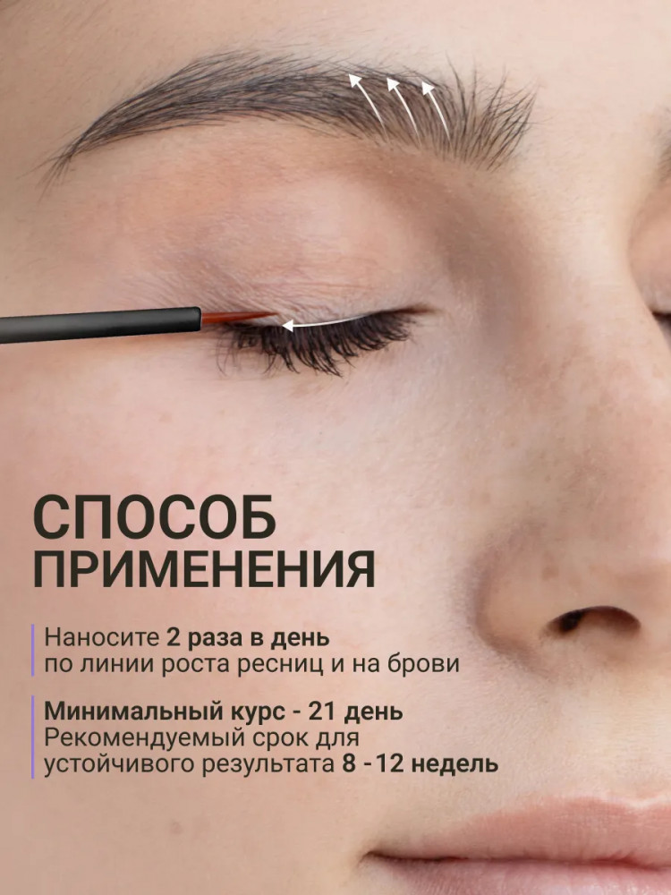 Сыворотка для роста ресниц и бровей подарит им естественный объем и красоту легко и абсолютно безопасно. Она питает и ухаживает за волосками, делая их более эластичными, сильными и блестящими. Пробуждает спящие фолликулы, запускает цикл роста новых волосков. Ресницы и брови становятся более густыми, здоровыми и выразительными. Результат через 21 день регулярного использования: более густые и длинные ресницы, красивые объемные брови. |
