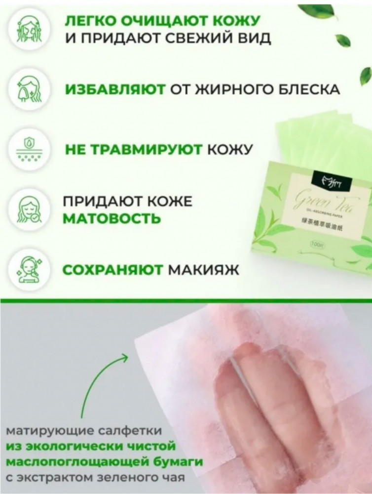 Салфетки для лица матирующие «Зеленый чай»+10