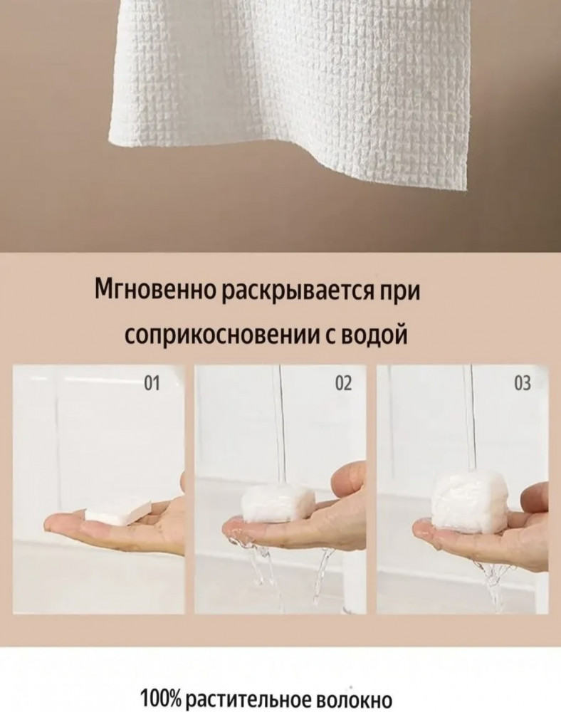 💳 Оплатить за товар можно при получении 🇰🇿 Есть бесплатная доставка по Казахстану 🎁 Копите бонусы с каждой покупки Салфетки прессованные — идеальное решение для тех, кто ценит комфорт и гигиену в любой ситуации. Этот набор одноразовых салфеток обеспечивает 100% хлопковую основу, что гарантирует мягкость и гипоаллергенные свойства, безопасные как для взрослых, так и для детей. Их герметичная упаковка позволяет сохранить свежесть и чистоту, благодаря чему вы можете быть уверены в их качестве. При контакте с водой такие салфетки мгновенно увеличиваются в размере, предоставляя вам возможность использовать их для различных нужд. Они идеально подходят для путешествий и командировок, вмещаясь даже в небольшую сумочку или рюкзак. Удобство и удивительное качество этих безворсовых салфеток сделают их незаменимым аксессуаром в вашем обиходе. |