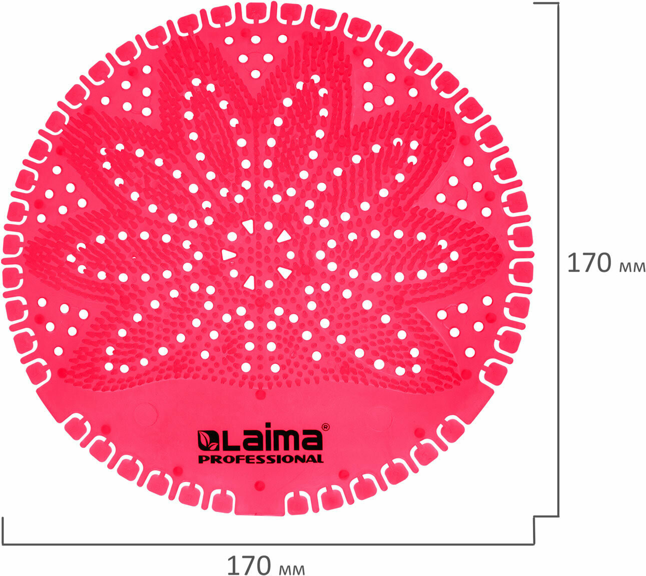 Использование ковриков для писсуара Laima Professional позволит значительно повысить уровень гигиены туалетных комнат, а это в свою очередь значительно повысит комфорт посетителей и престиж самого заведения. Диаметр коврика — 17 см.