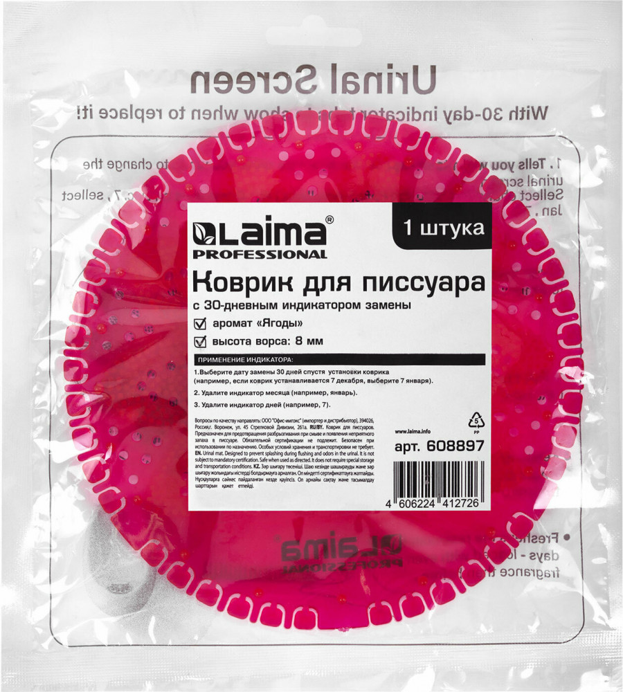 Дезодоратор коврик для писсуара Laima Professional — это защита от запаха и разбрызгивания до 30 дней и поддержание чистоты в туалетной комнате. Применяется в общественных туалетных комнатах отелей, офисных зданий, аэропортов, больниц, ресторанов. Коврик Laima Professional эффективно предотвращает неприятные запахи в общественных туалетных комнатах, обеспечивая приятный аромат в течение 30 дней. Благодаря особой структуре ворса эффективно предотвращает разбрызгивание воды и урины, что позволит сэкономить время и затраты на уборку. Он не только избавит от проблем, связанных с уборкой туалетной комнаты, но и устранит вероятность возникновение засоров.