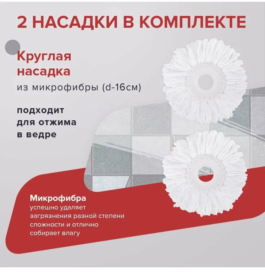 • швабра с круглой насадкой из микрофибры 125×36 см — 1 шт.;
