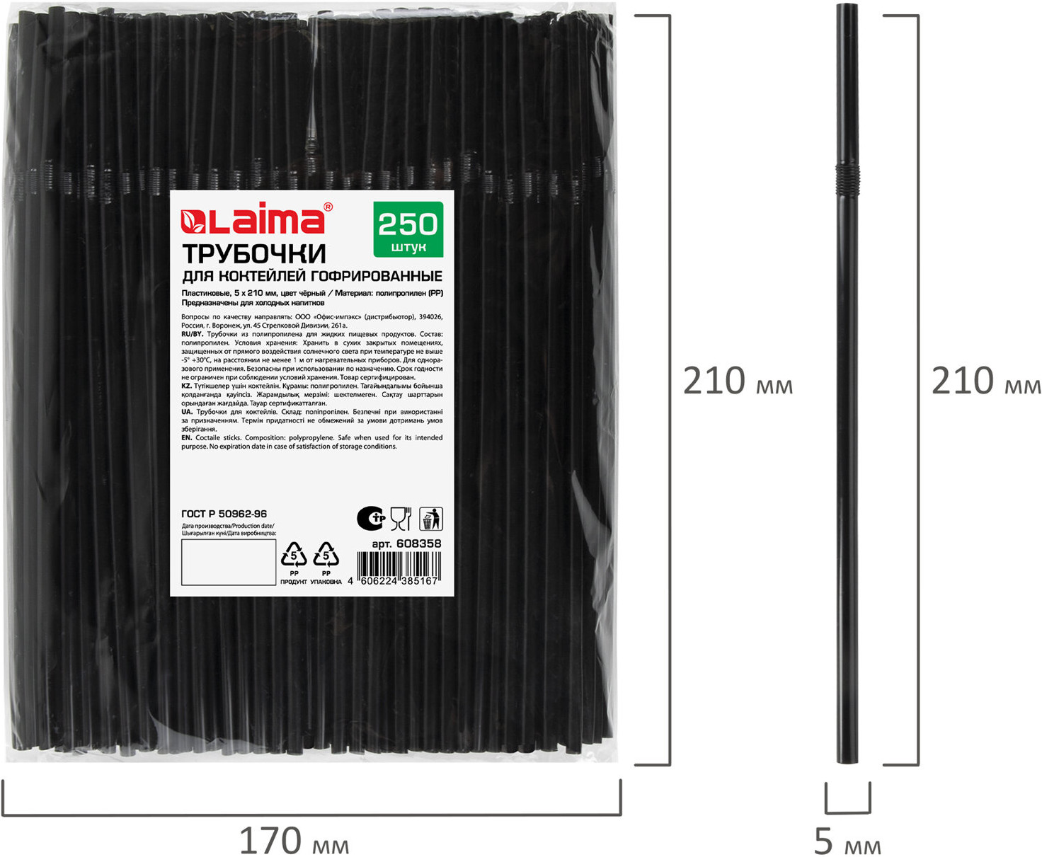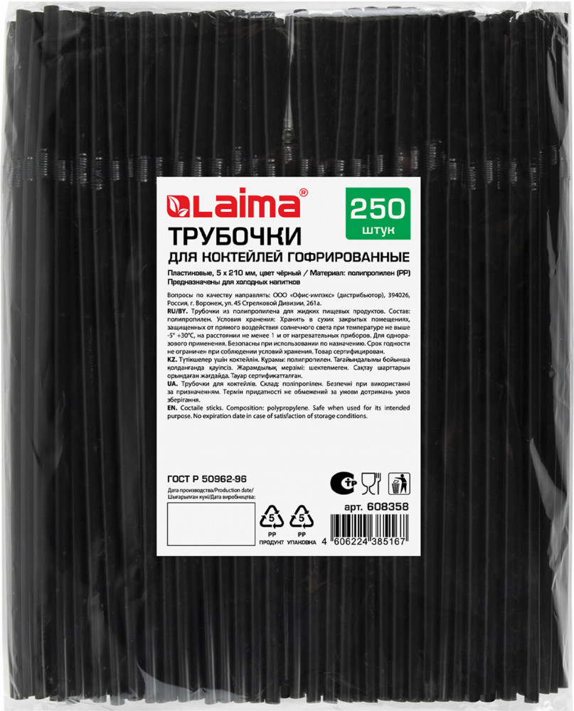 Laima Набор трубочек для коктейлей гофрированных