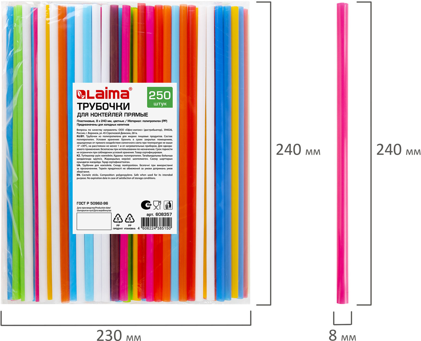 Laima Набор трубочек для коктейлей прямых