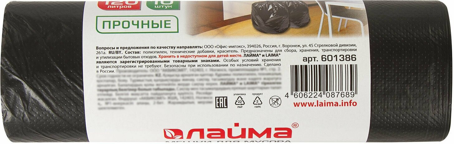 💳 Оплатить за товар можно при получении 🇰🇿 Есть бесплатная доставка по Казахстану от 1 дня 🎁 Копите бонусы с каждой покупки Мешки для мусора Laima в рулоне предназначены для сбора, хранения, транспортировки и утилизации бытовых отходов. Широко используются в офисах, дома, в строительной, медицинской сфере, супермаркетах или на улице, в специальных урнах для мусора. Изготовлены из полиэтилена низкого давления (ПНД) плотностью 18 микрон и имеют объем 120 литров. Размер мешка — 70×110 см (±5%). Поставляются в рулоне по 10 штук. Преимуществами данных мешков для мусора являются: большой объем и высокая грузоподъемность. Данный товар относится к средней ценовой категории. |
