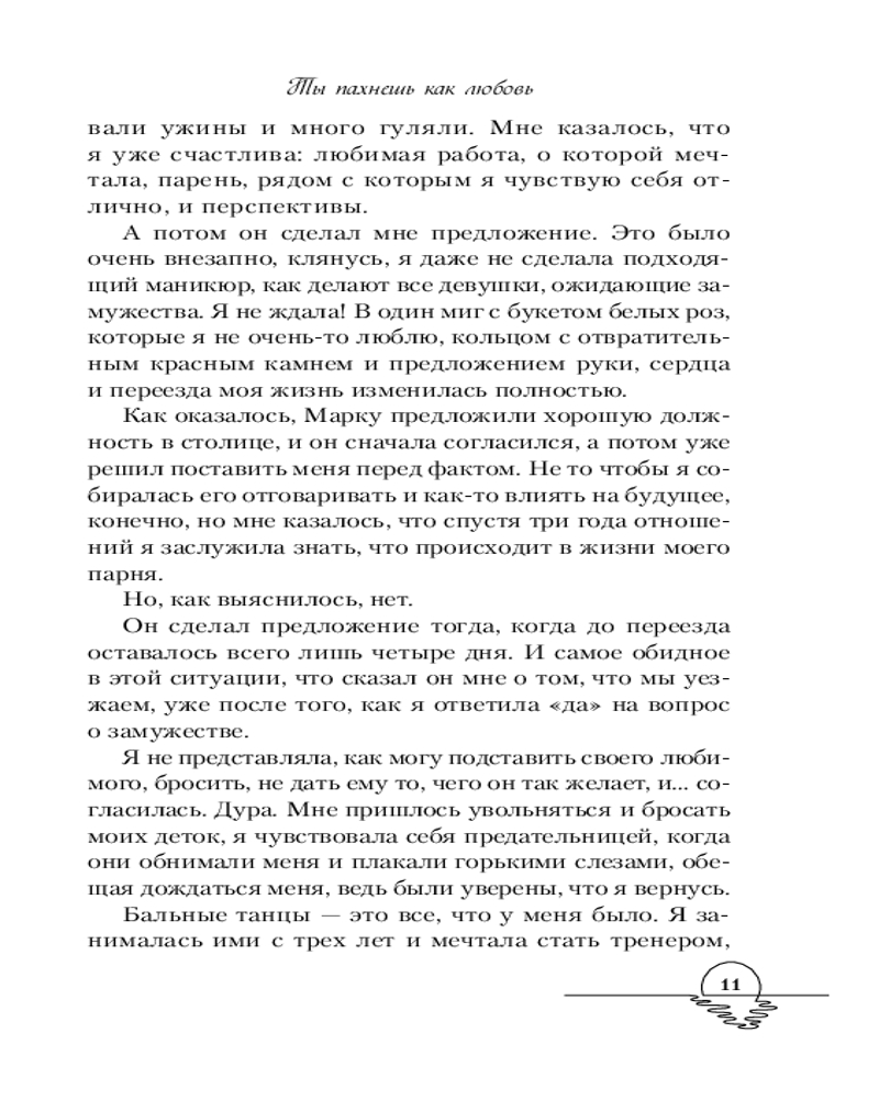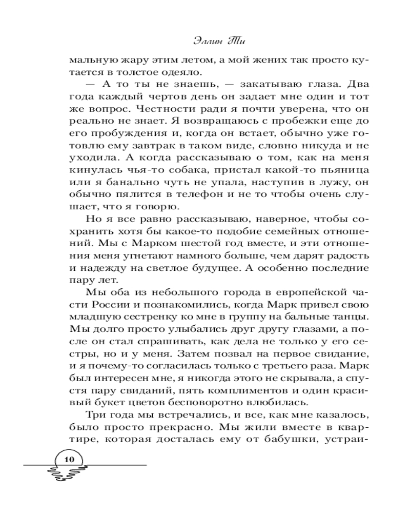 Отдых в знойной Испании, обжигающая страсть, бесконечная любовь, спасение от абьюза. Шикарный слог автора, яркие персонажи, безупречное художественное оформление влюбят в себя каждого. «Ты пахнешь как любовь» — важная история о том, что настоящая любовь не может ранить. Эллин Ти — известный автор сентиментальной прозы, автор цикла-бестселлера «Любовь растопит даже лед»! |
