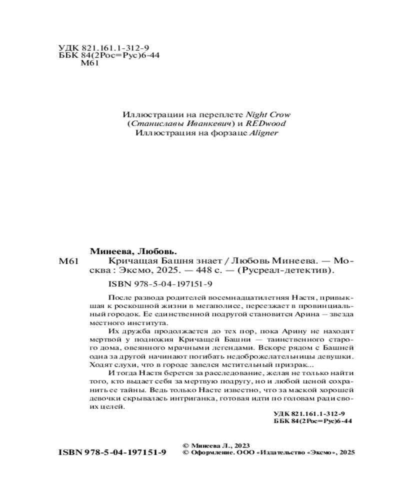 💳 Оплатить за товар можно при получении 🇰🇿 Есть бесплатная доставка по Казахстану от 1 дня 🎁 Копите бонусы с каждой покупки Серия: Русреал-детектив Детективный триллер в сеттинге мрачного русреала, наследующий традиции психологического романа Достоевского. История с городскими легендами русской глубинки в духе «Зайчика» Дмитрия Мордаса и культовой подростковой трилогии Мариам Петросян «Дом, в котором». |