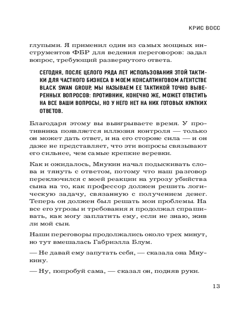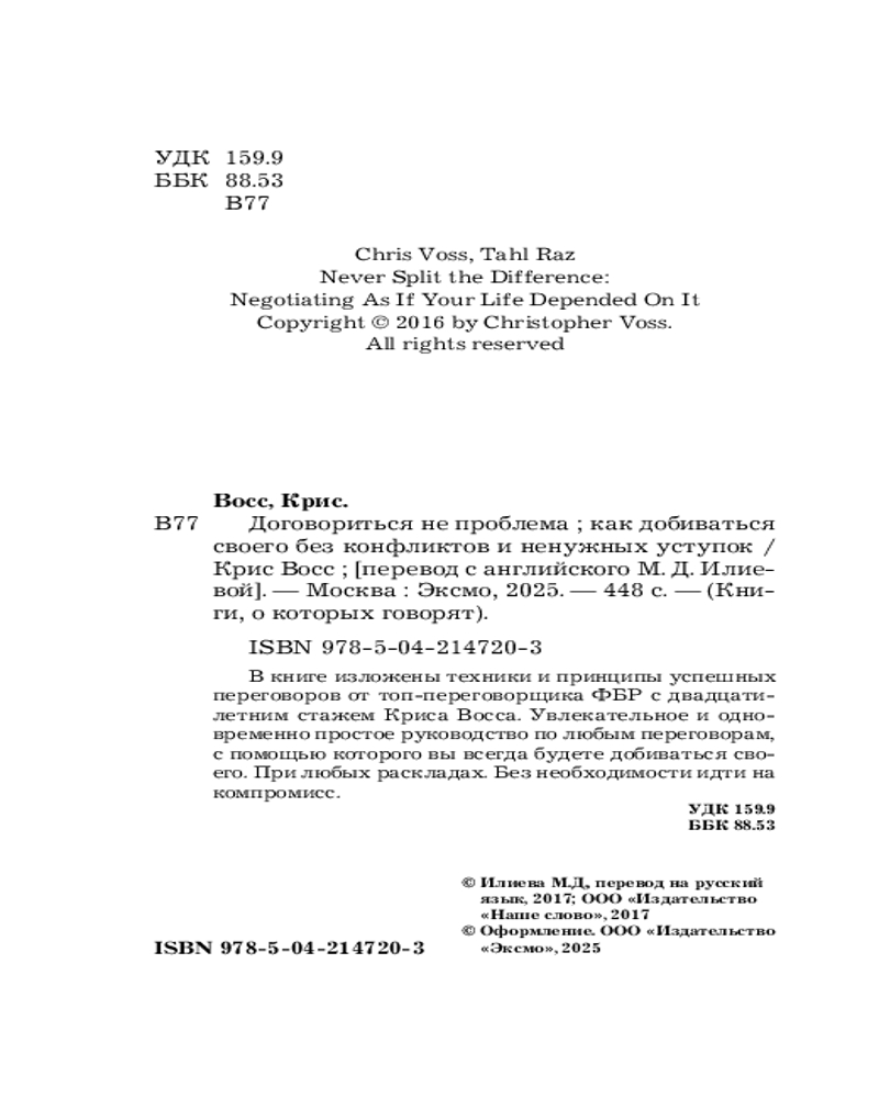 💳 Оплатить за товар можно при получении 🇰🇿 Есть бесплатная доставка по Казахстану от 1 дня 🎁 Копите бонусы с каждой покупки Серия: Книги, о которых говорят «Я не вижу особой разницы между террористом, взявшим в заложники людей, и агентом по недвижимости, который отчаянно пытается сбить цену на ваш дом», — утверждает Крис Восс на страницах своей книги. Те приемы, которые срабатывают в переговорах с первым, точно так же срабатывают и со вторым. Разница только одна: когда спасаешь заложников, не имеешь права останавливаться на полпути — соглашаться на освобождение, скажем, семи человек из десяти и гибель остальных. Ты должен всегда идти до конца. Добиваться абсолютной победы при любых раскладах. Книга «Договориться не проблема» именно об этом. |