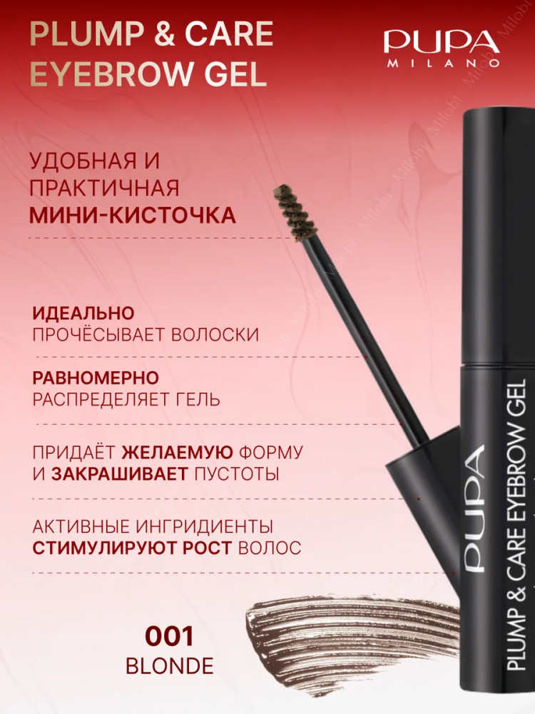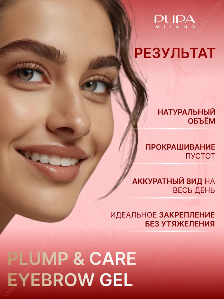 Pupa Гель для бровей укрепляющий фиксирующий оттеночный «Plump & Care Eyebrow Gel», оттенок 001 Blond