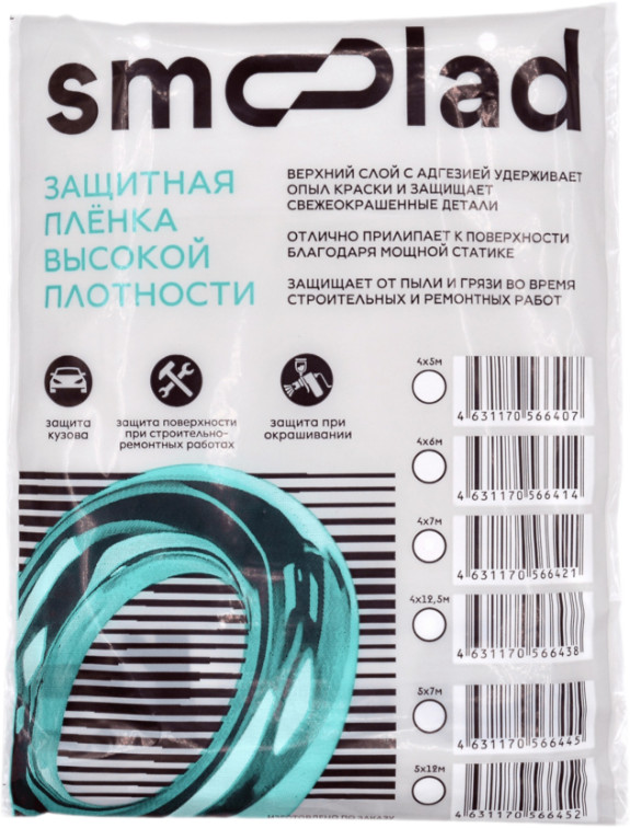 Smoolad Пленка защитная укрывочнаяВ данный момент этот товар отсутствует в продаже. Возможно, у нас найдется аналогичный или похожий товар здесь. Укрывная пленка Статичная пленка HDPE, надежно защищает рабочую поверхность от попадания различной лакокрасочной продукции, грязи и пыли. Не поглощает краску. Толщина:7 мкм. |