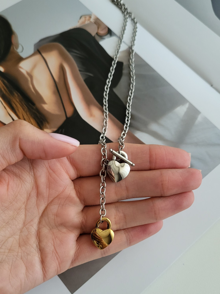 Колье-цепочка с кулонами в виде сердец