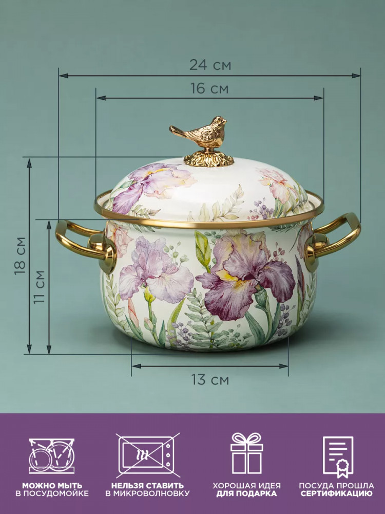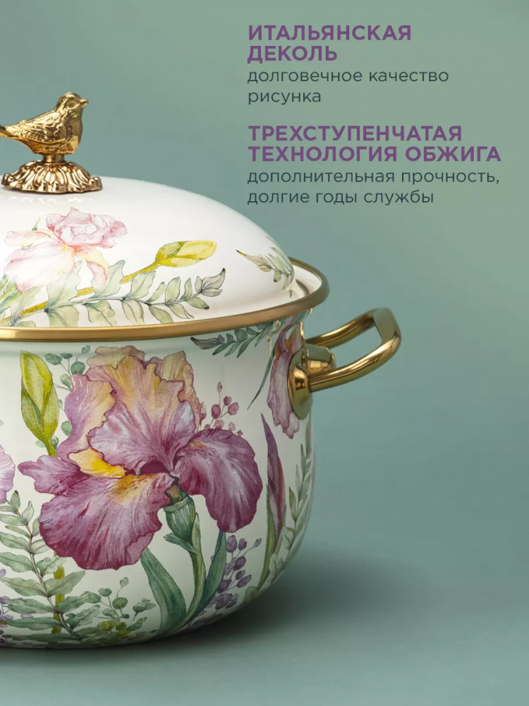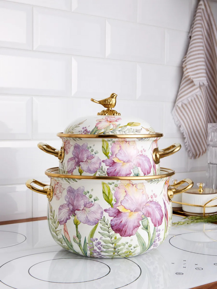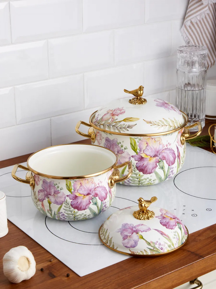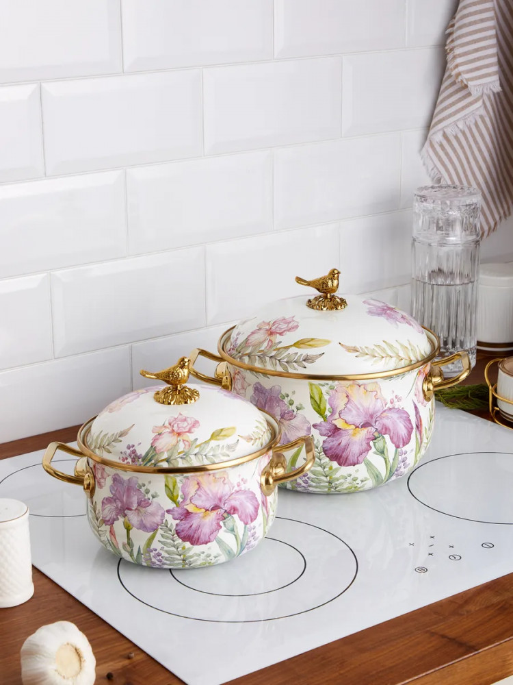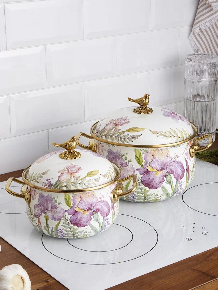 | Agness Набор кастрюль эмалированных с крышками «Irises»+1706 (бонусов)