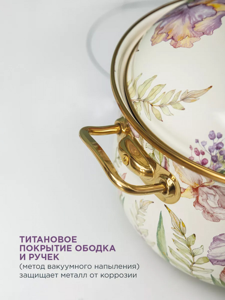 • титановое покрытие ободка и ручек защищает посуду от коррозии;