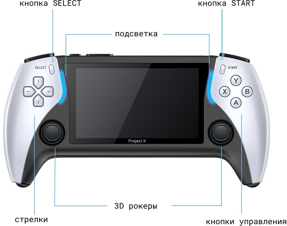 Project X обладает ярким 4.3″ дюймовым экраном высокой четкости, с функцией защита глаз и двумя встроенными динамиками, на тыльной стороне корпуса. В консоли более 2000 встроенных игр. Ее можно подключить к телевизору и использовать большой экран для игр. |