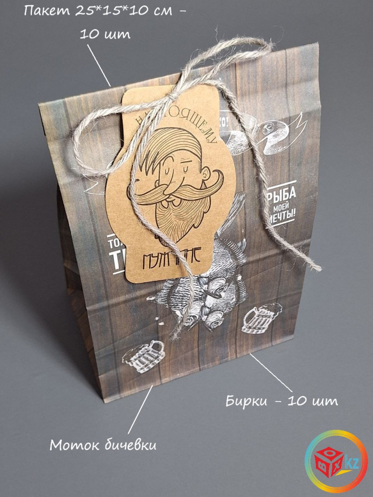 Box.kz Набор пакетов с бирками и бичевкой «Рыба»+23