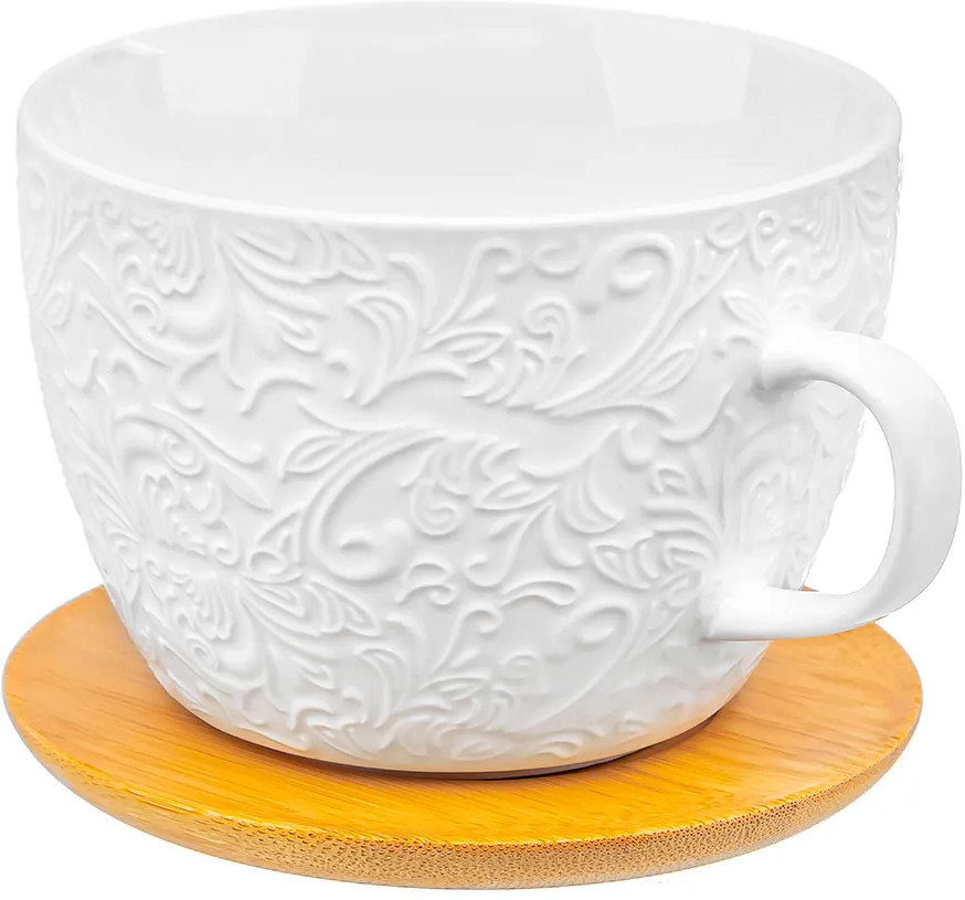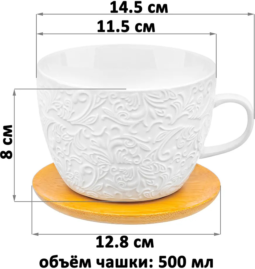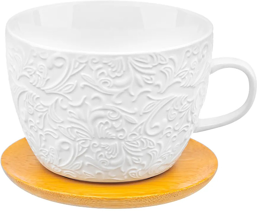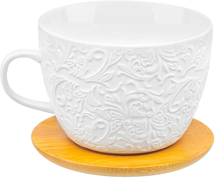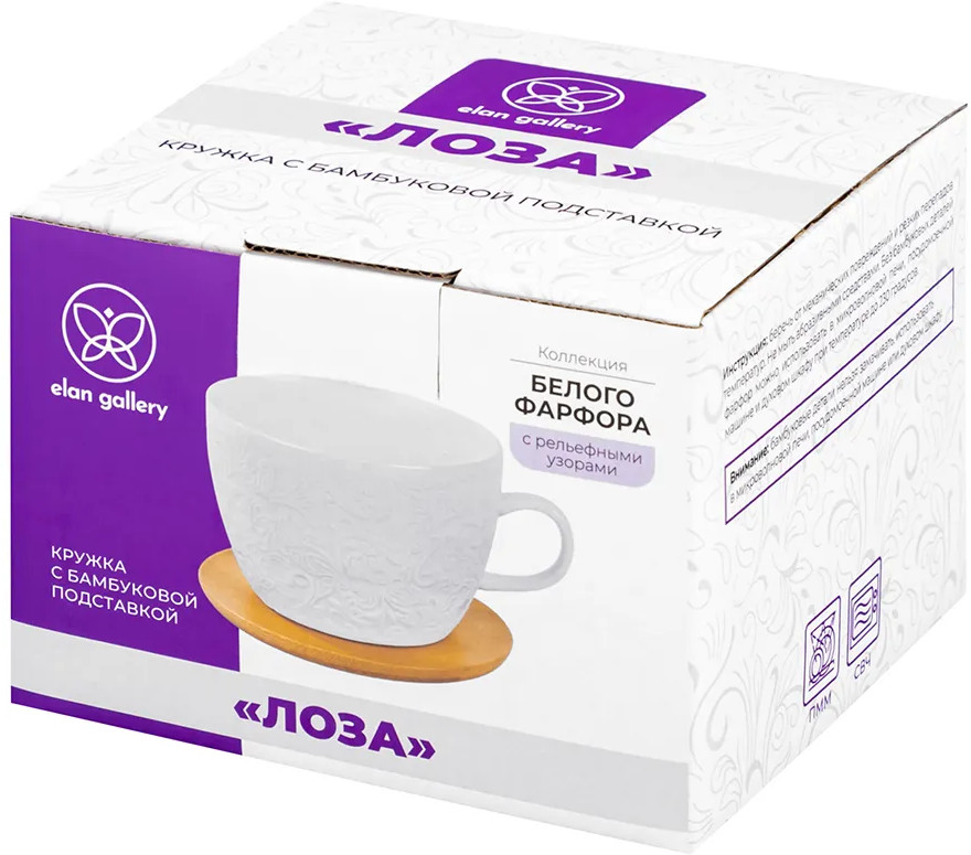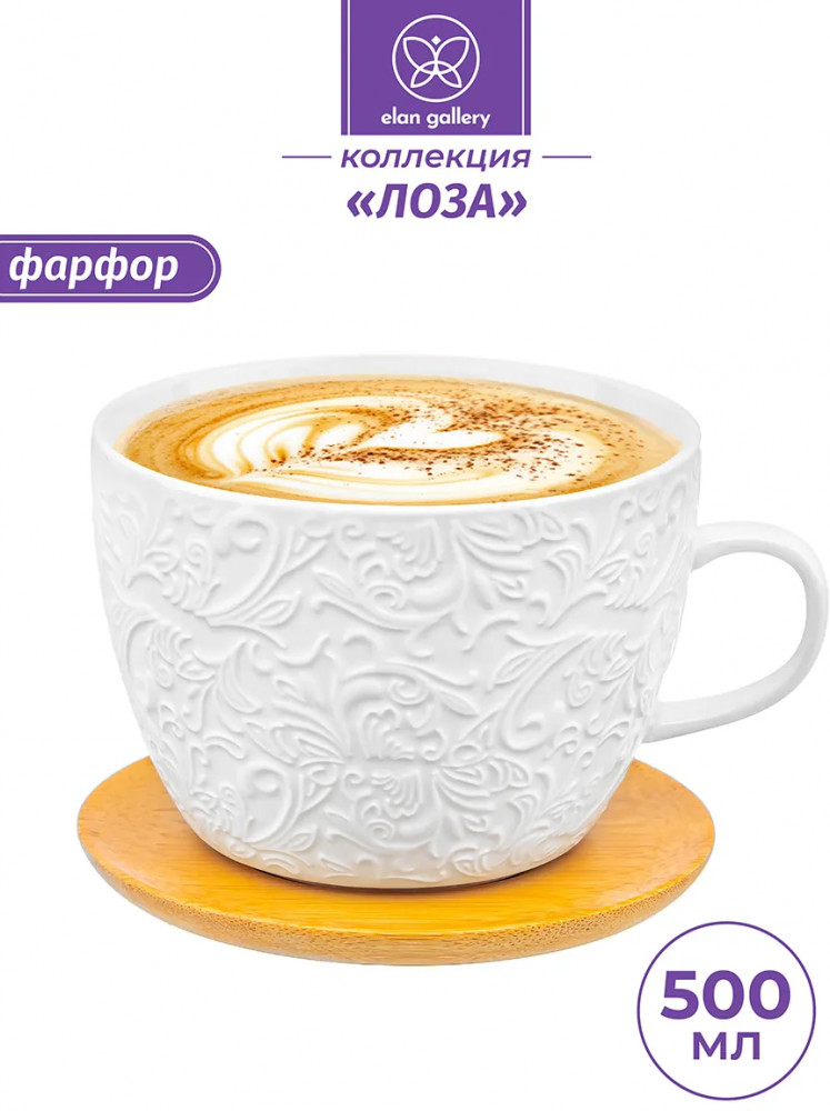 Elan Gallery Чашка для капучино и кофе латте с бамбуковой подставкой «Лоза»В данный момент этот товар отсутствует в продаже. Возможно, у нас найдется аналогичный или похожий товар здесь. Серия: Лоза Чашка из серии «Лоза» от Elan Gallery предназначена для красивой сервировки стола. Размер ёмкости — 14,5×11,5×8 см, объём — 500 мл. Выполнена из высококачественного белого фарфора. Он не впитывает цвет напитков и легко отмывается, благодаря чему надолго сохранит свою белизну. Поверхность изделия украшает рельеф в виде тонкой, элегантной лиственной лозы. Подставка выполнена из натурального бамбука. Кофейная кружка поможет провести множество приятных завтраков с капучино или латте, а также уютные чайные вечера с конфетами, вафлями, другими десертами и сладостями. Подойдёт ценителям чая и кофе, которые любят пить из красивой и необычной посуды. Согрейтесь зимой любимым горячим напитком: какао с маршмэллоу, ягодным чаем, горячим шоколадом. Летом освежитесь домашним лимонадом или морсом. Декоративная кружечка добавит эстетики любому чаепитию. Деревянная крышечка защитит поверхности от воздействия высоких температур. |