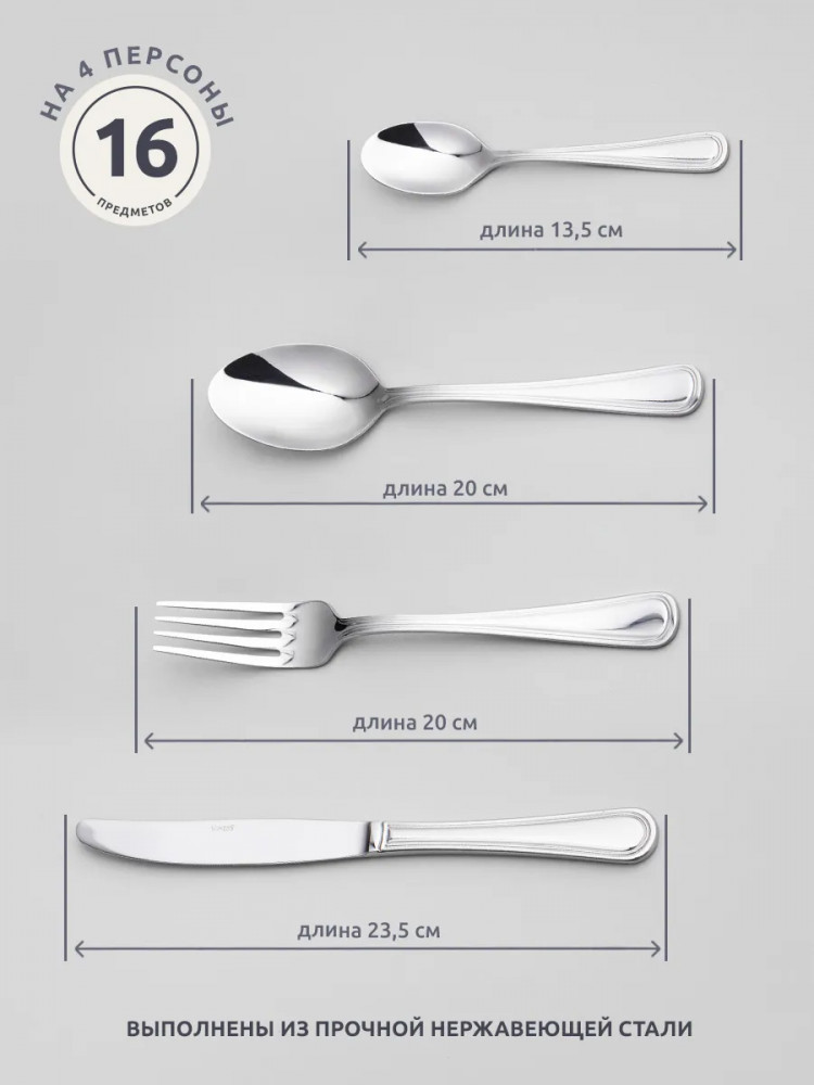• столовые ложки, 20 см — 4 шт.;