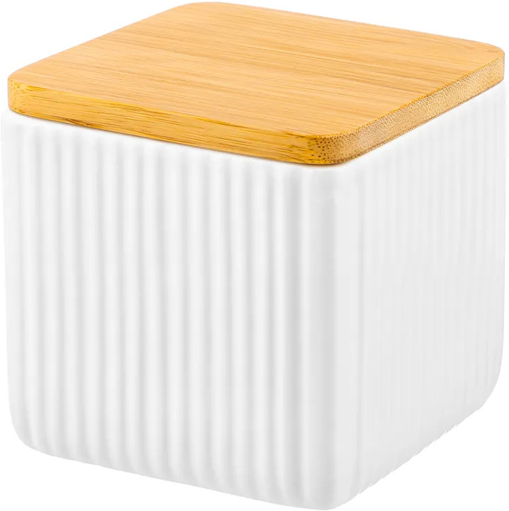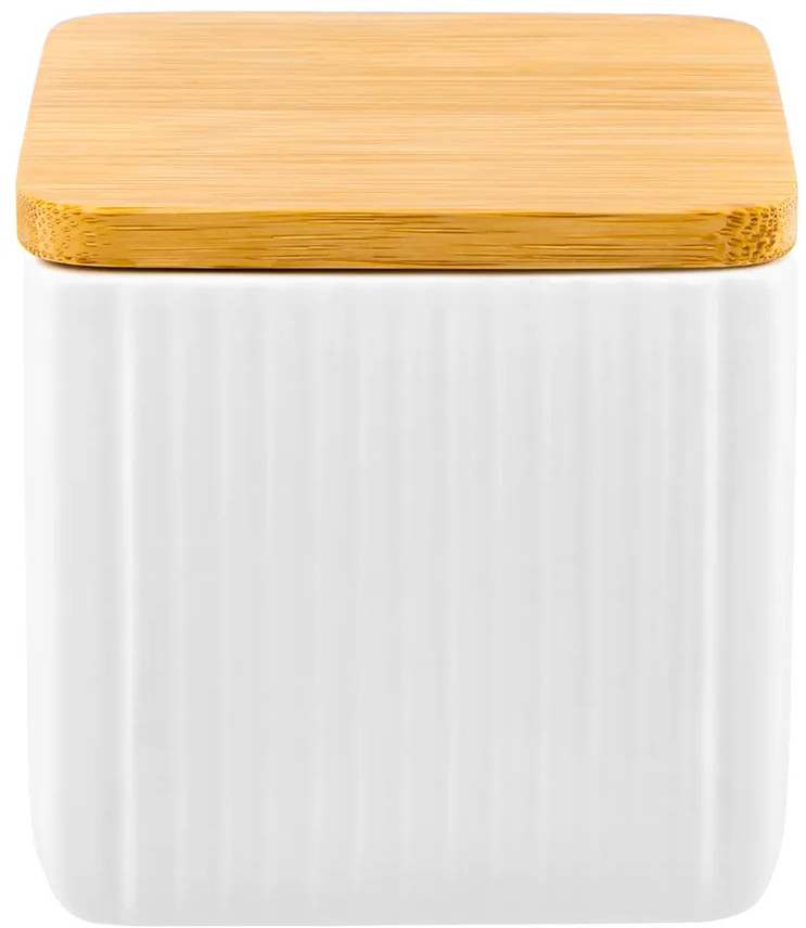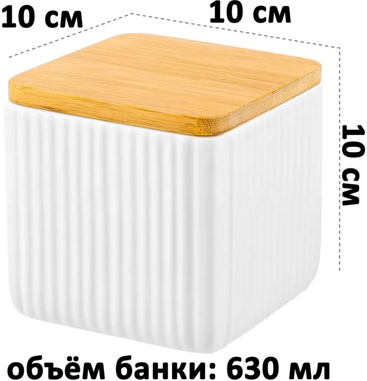 Банка от Elan Gallery предназначена для организации хранения продуктов на вашей кухне. Выполнена из керамики и имеет белый цвет, поверхность украшена рельефными вертикальными полосами. Крышка выполнена из натурального бамбука и оснащена силиконовым уплотнителем. Изделие отлично подойдёт для хранения сыпучих продуктов: сахара и соли, чая и кофе, приправ и специй. Храните в баночке ягоды, орехи и сухофрукты. Заполните её любимыми сладостями: леденцами, конфетами или печеньем. Подайте к столу, чтобы идеально дополнить чайную сервировку! Герметичная деревянная крышечка защитит ваши продукты от попадания грязи и пыли.