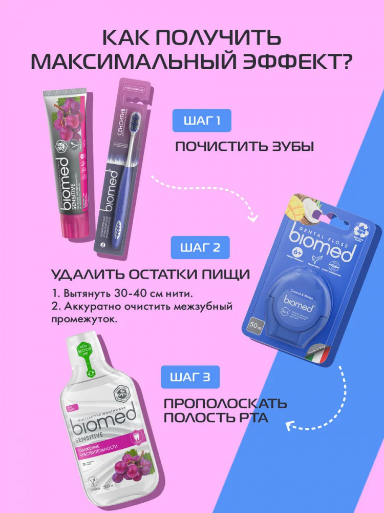 Зубная щетка Biomed Pink Soft — биоинновация для здоровья и красоты вашей улыбки. Разработана для бережной чистки чувствительных зубов и десен. Напыление из розовой гималайской соли на ее 2024 мягких и тонких заостренных щетинках помогает нейтрализовать кислый pH в полости рта, тем самым снижая риск развития кариеса. Богатая минералами и микроэлементами розовая гималайская соль оказывает мягкое антибактериальное действие, укрепляет эмаль и оздоравливает десны. Уникальная уплотненная щетина Biomed Pink Soft не имеет соленого привкуса. Она эффективно и безопасно удаляет налет, бережно массирует десны, оставляя приятное ощущение чистоты во рту. Товар находится в ассортименте без возможности выбора.