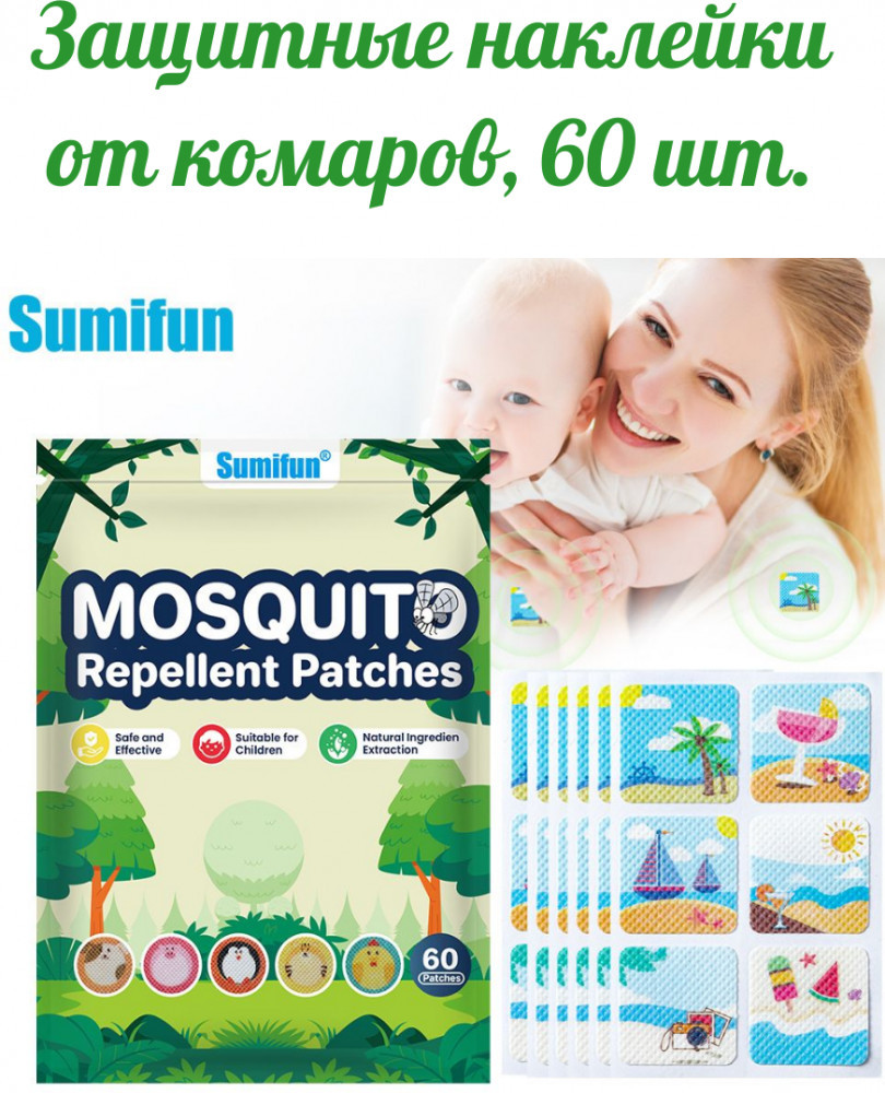 Sumifun Mosquito Repellent Patches — это инновационное средство защиты от комаров для детей, сочетающее высокую эффективность и абсолютную безопасность.