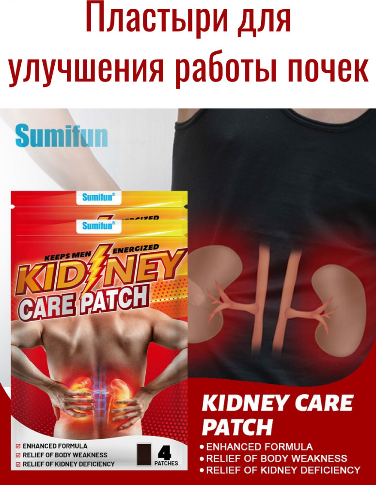 Sumifun® Kidney Care Patch — это инновационные пластыри с усиленной формулой на основе натуральных компонентов, разработанные для поддержания здоровья почек, снятия хронической усталости и восстановления жизненной энергии.