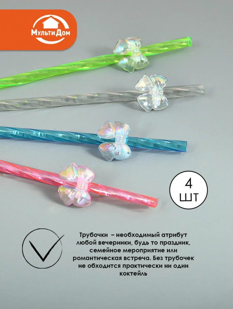 Мультидом Трейдинг Набор трубочек для коктейлей «Бантики»-20% +48